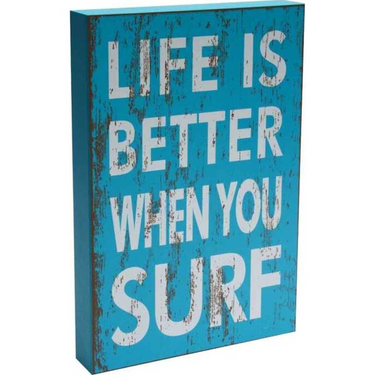 This sky-blue plaque boldly declares 'life is better when you surf' in capital white blocks, which is true for a myriad of reasons. One can expect to have numerous breathtaking moments while at sea riding on a wave. Sun, sand and salt blend with virtue at the beachside and exposure to the oceans is believed to have positive impact on health. The most relaxing experience of surfing possibly happens at the end of a rough day when seeking for a getaway from the hassles of life. Wavy sea action offers an unusual inner sanctum of stillness, suddenly making one to feel secluded in peace, even with the beach full of pleasure-seeking vacationers.