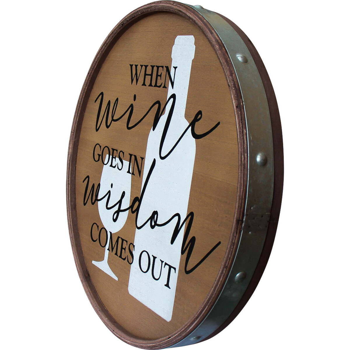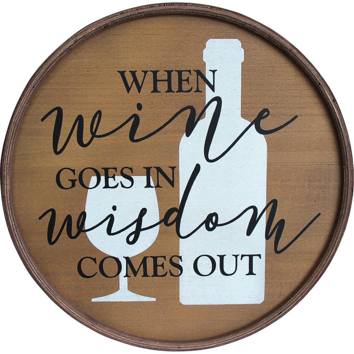 Make your spaces, be it the bar area, the living room or even your study space come alive with a sign board that makes things seem cheery and fun filled. The round sign board is 40 cm in diameter ahs comes win woody colour beautifully capturing the shade that old oak casks have. The edge is framed in wood and the letter sprinted in lovely archaic scroll looks rather attractive. While the bottle of wine and the glass is printed in white, the words are all in black which helps it contrast wonderfully with the brown of the backdrop as well. The round shaped signboard makes a wonderful addition to your spaces helping them loosen the collar. Made to impress as much with its wit and humour as with its design. It's a great means to liven up shelves and bar counters. After all with a size as handsome as 40 cm in diameter its bound to impact the look of the entire space.