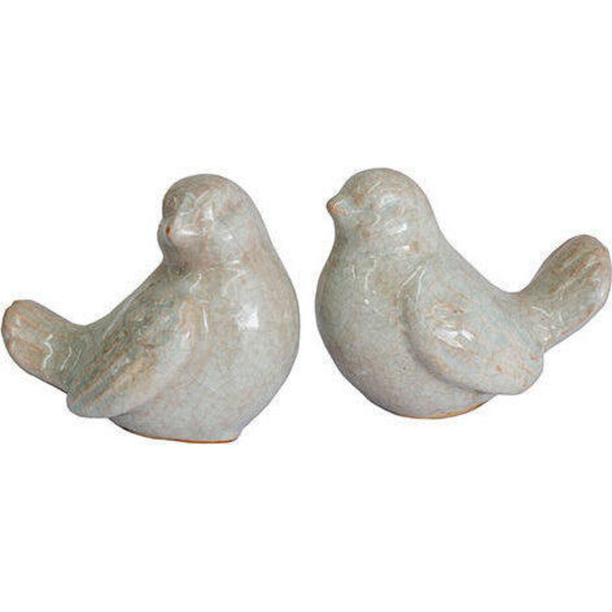 Birds are energetic little creatures whose very presence can render a space more attractive and cheerful. This pair while sitting calmly adds to the simple beauty of the space as they themselves are tiny and delicate and all white with little detailing of wings, the beak and the tiny little head - yet there is so much in terms of the imagination and the associative imagery that it helps bring to the fore that instantly we feel the décor to be more sublime, peaceful and calm - pretty much like the countryside. It could be placed on mantles, under lamps or along with several such farm animals that have been lovingly crafted from ceramic by an expert set of hands that know how to mould and fire clay to get such a wonderful effect. The tiny birds with their vintage white colour and soft crackled effect typical of well - made handcrafted ceramic will induce a great deal of interest in your decor and will help build the simplicity of farm and countryside in the most subtle of ways. The height of the birds is a mere 8 cm and from the tip of its beak to the end of the tail, the length is all of 10 cm. When placed side by side the pair looks positively endearing and fills your mind with very soft and soothing associations.