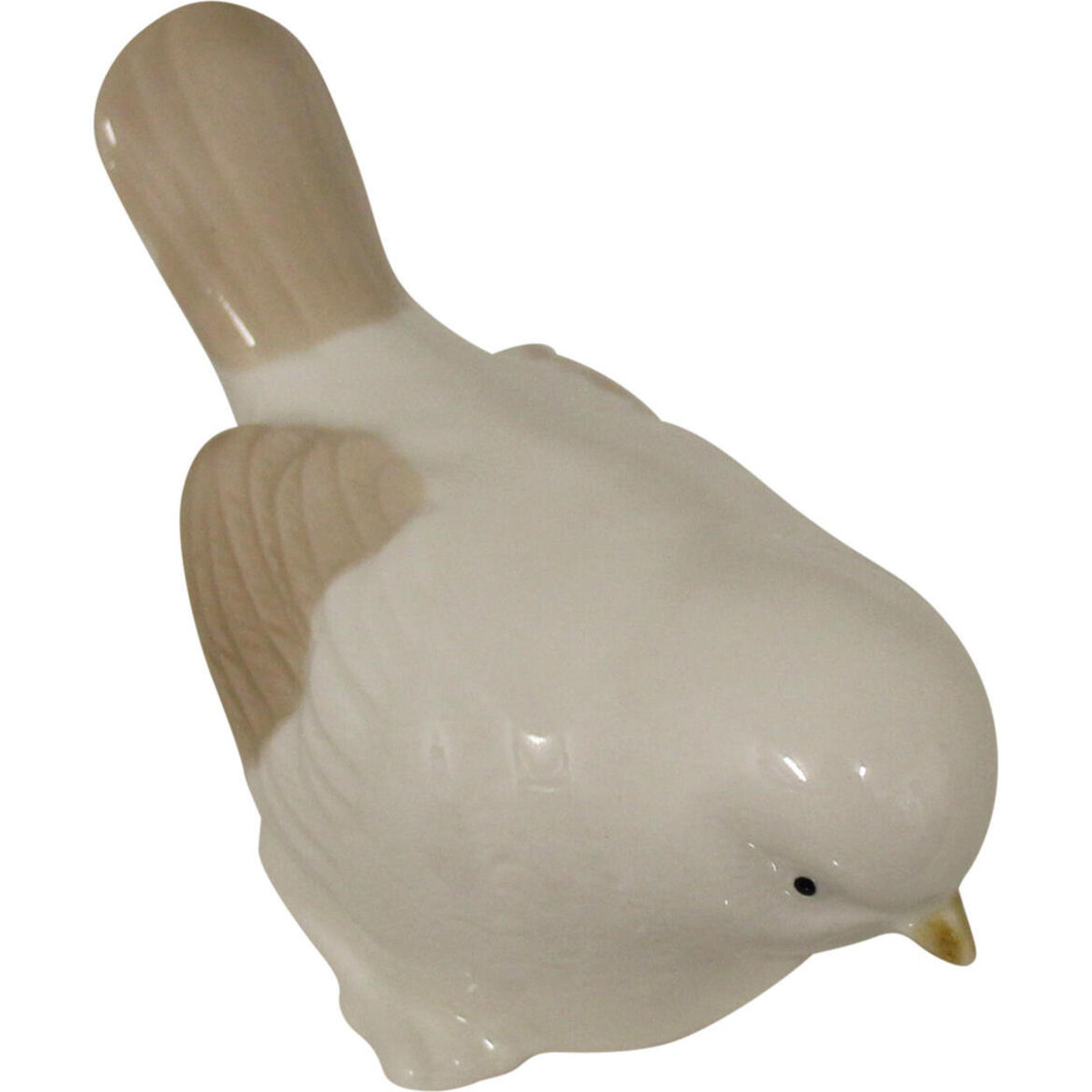 Add a touch of sheer joy that springtime brings with it. The twitter of birds, the flurry of butterflies and the fragrance of blooms- and making all of this partly possible is this beautiful range of tiny bird figurines that could be made part of your décor. Made from high grade ceramic, they wear a delightful glaze that speaks volumes about its artisanal quality. Soft beige colour meets a dull white to give it a life like quality. The tiny creature seems most animatedly keeping its eyes focused on a little mural perhaps on the ground, which seem to have caught its attention. The tail is up-tipped in beige, as its wings. The beak is also downwards showing the intent at making a meal from what it is looking at. Add this ceramic bird near floral vases or greens and give it the perfect backdrop to look great in. this 9 cm long bird figurine has a similar kind of height which makes it rather well proportioned. It's well balanced on its tiny little legs that makes it all the more usable for creating a shelf decoration you could in fact a few more birds available in this collection to make a more wholesome group.