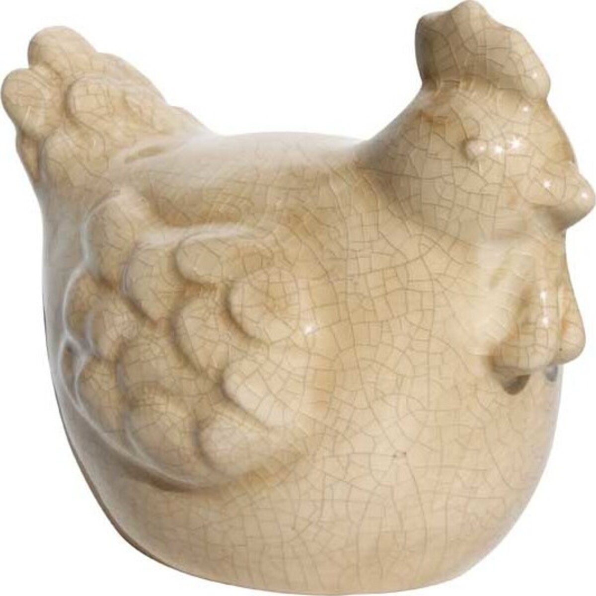 The Sitting Chicken Cream is a simple-looking home décor item that features minimalist designs. It is a ceramic statue of a chicken and the execution is somewhat classic and 'homey' in style. By the look of it, it looks like a handcrafted masterpiece. There is not much detail on it. But that is the appeal of the Sitting Chicken Cream. It is mostly rounded and the details are discreet and minimal. Also, its surface features a pattern of cracks that web across its pearly smooth surface. This gives it a unique classic appeal Design-wise, the Sitting Chicken Cream is great for classic style and traditional style homes. It makes a great tabletop decoration or a fine addition to a collection of ceramic crafts.