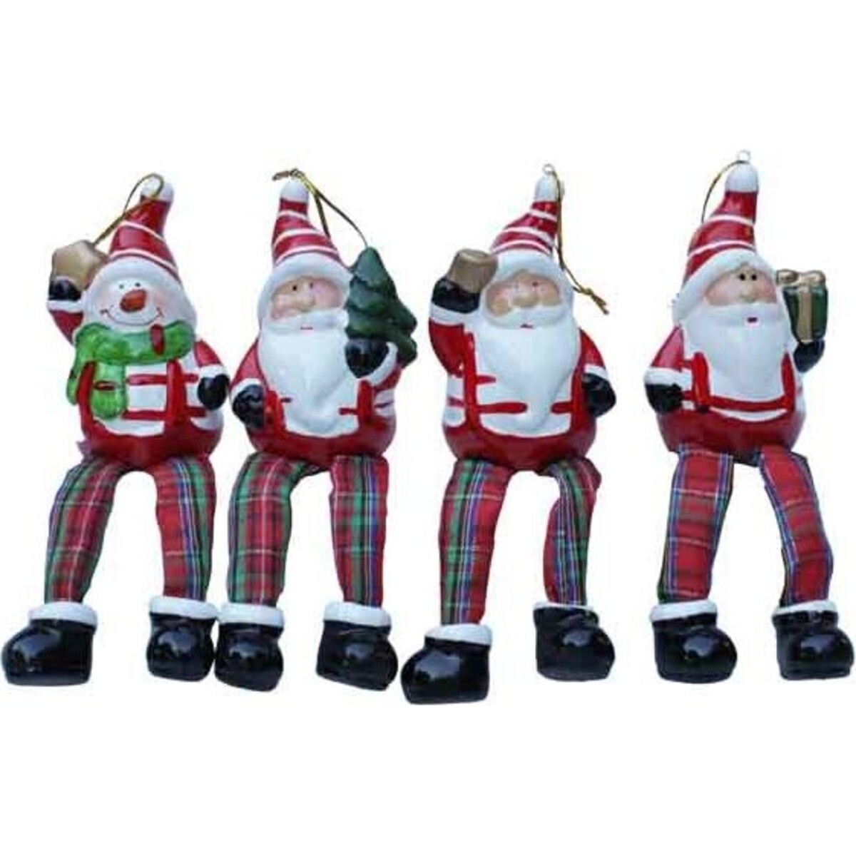Holiday themed decorations get four times the fun and festive treat with this stylish and wacky hanging set. There are four unique Santa accessories in this ensemble perfect for hanging on Christmas trees or simply accentuating any homes or other venues. All four pieces were crafted from lightweight and long-lasting materials.
