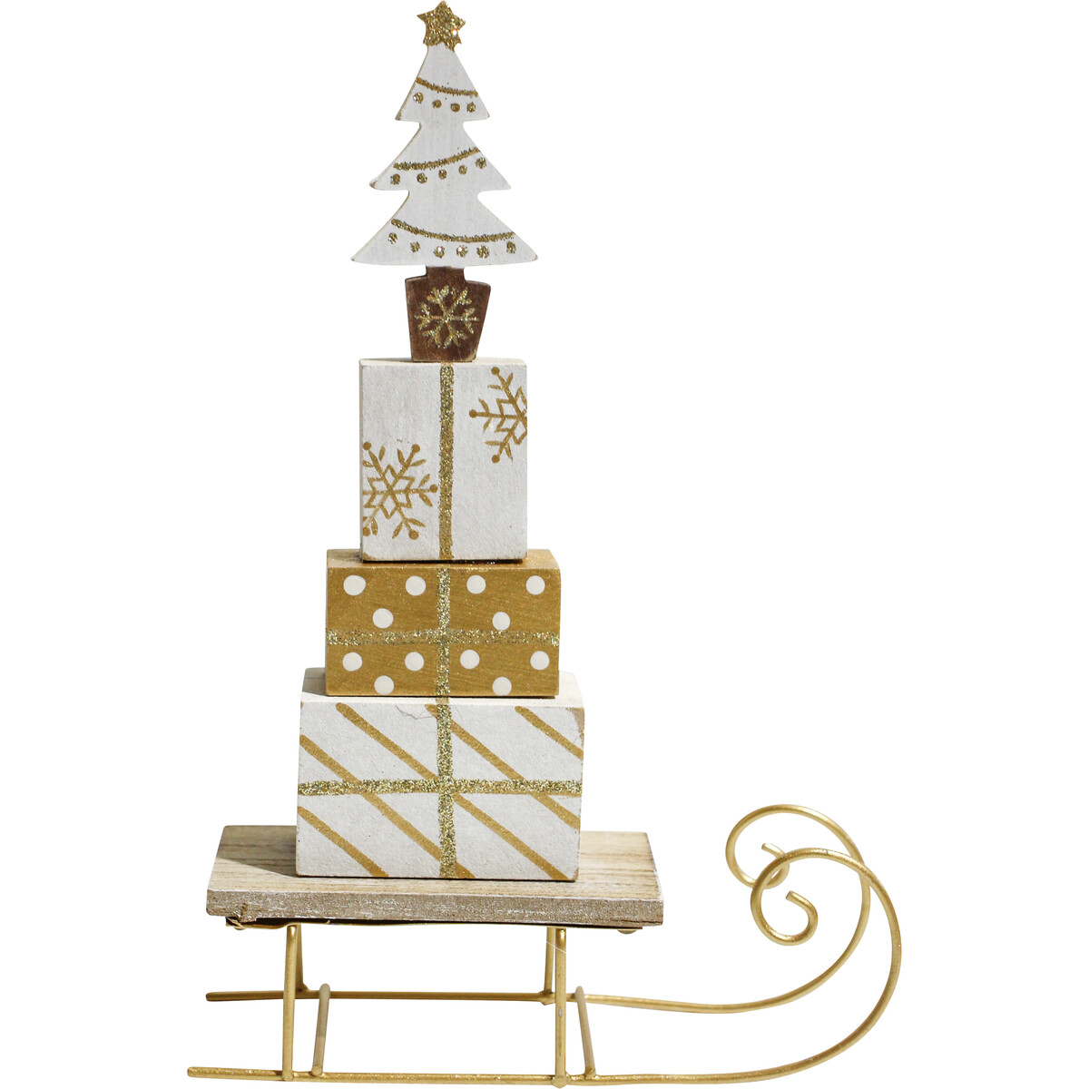 We have a bit of a soft spot for this Sleigh Xmas Present Stack. It’s just so fun and a little whimsical, but it fits so nicely with most Christmas decor themes. And we’ve noticed - the soft white and gold tones feel both modern and almost a bit nostalgic at the same time. This one measures 21x13.5x5cm, made from sturdy metal with painted and glittery MDF stacked gifts on top, right up to the sweet tree at the very top. The warm shades really catch the light in rooms with plenty of sun, but it still manages to look pretty fantastic after dark too - we reckon it could quickly become a part of clients’ Christmas traditions. We see this bringing a smile to your shop’s customers who appreciate a classic Christmas with contemporary elements - though you probably know your market best! It’s striking but relaxed enough to work in all kinds of living spaces - in fact, we can see it looking lovely as an office desk Christmas decoration too.