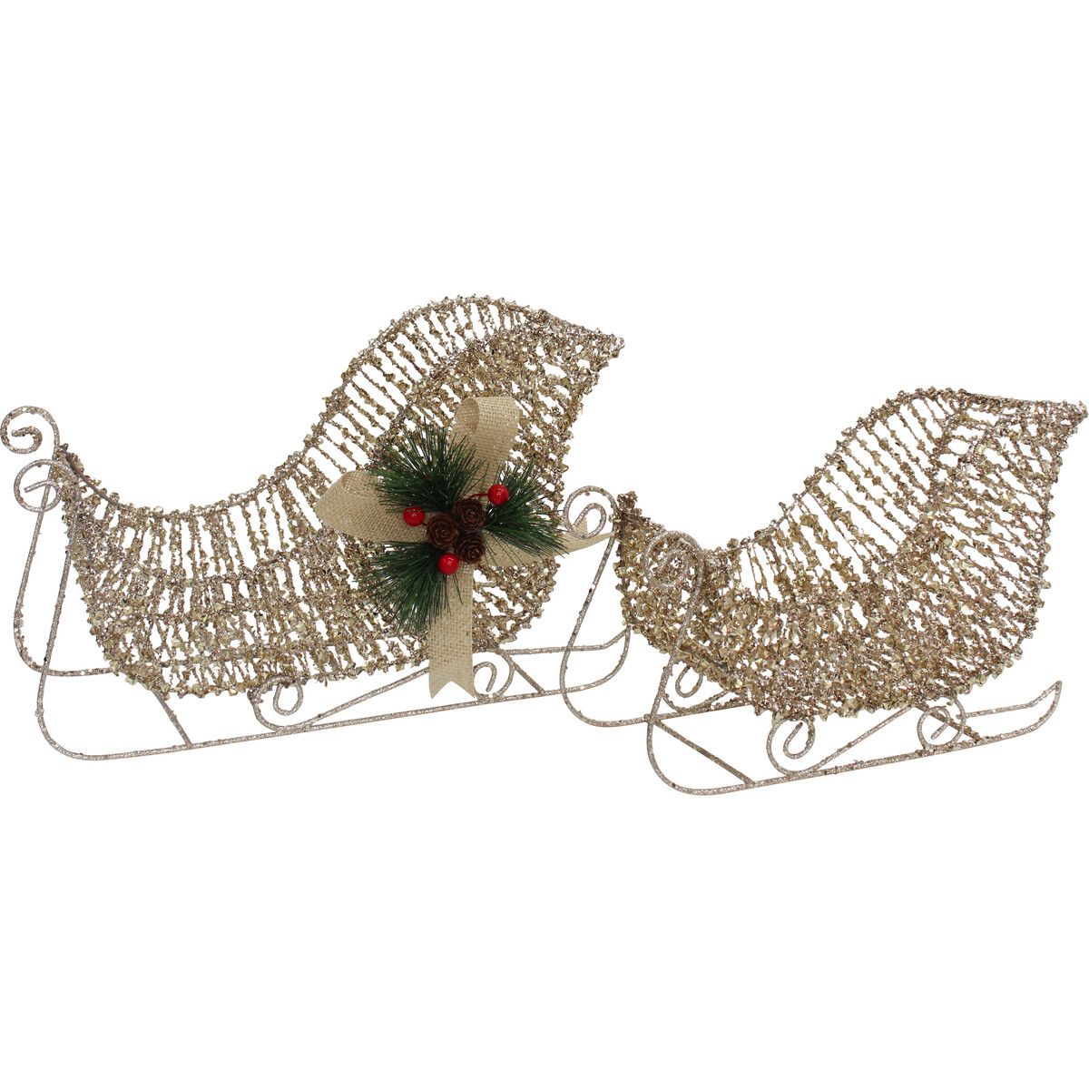 All right, these gold sleighs - they really do bring a bit of glamour to Christmas decorating. And we’re honestly quite proud of the craftsmanship here - each sleigh in this set of two is made from sturdy metal and finished with a stunning gold sheen that manages to be festive without being gaudy. Those measurements? The large one comes in at L:36x23x23.5cm and the smaller is a charming 27x13x19cm, so they don’t dominate a space - but they certainly stand out.