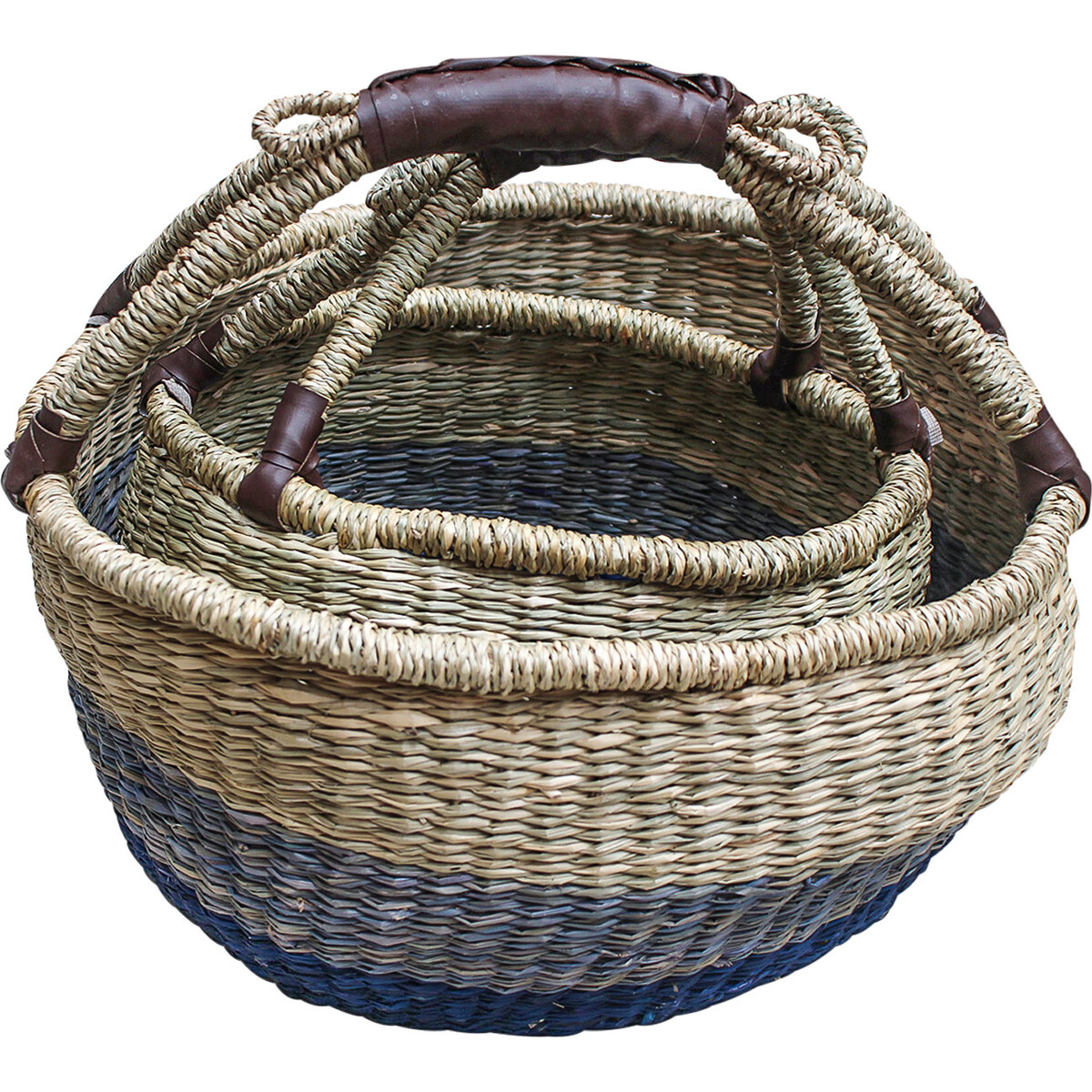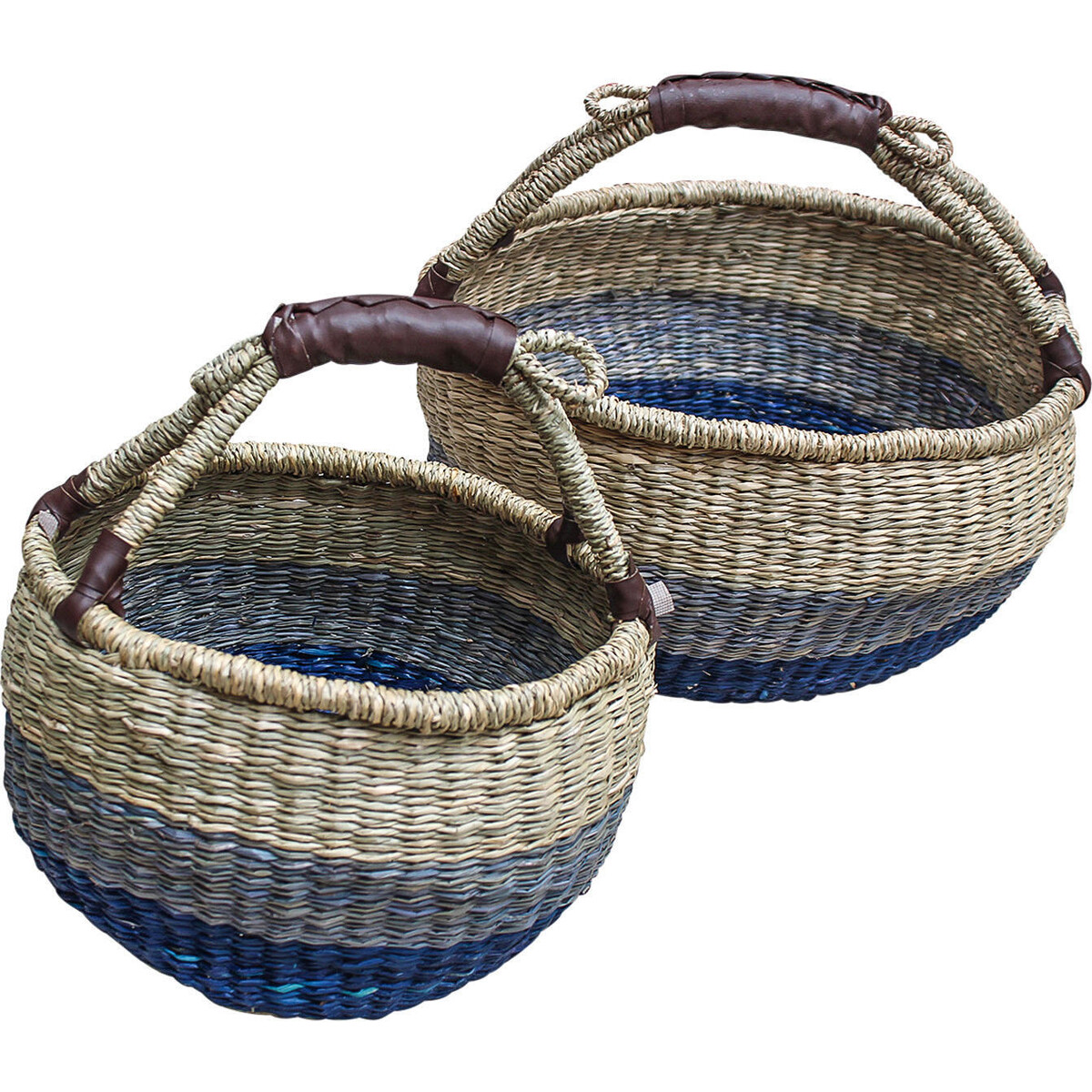 Made from seagrass, this set of twin baskets have been created keeping in mind the need for organizing that all home shaver, the seagrass has been colour treated and made tougher so as to be able to take the wear and tear of everyday use, the weave in traditional, whose revival Lavida has helped in creating the wide mouth baskets come in two sizes and the shirt handles help giving the wider top a certain kind of stability. While they may not be structured yet they are quite stable when placed on flat surfaces. The colour combination too is most attractive- and will add to any space where they will bring in plenty of neatness and chicness combined. Leather like trim on the top of the handles and on the sides where it has been attached to the main frae of the basket make the to baskets look rather attractive.
