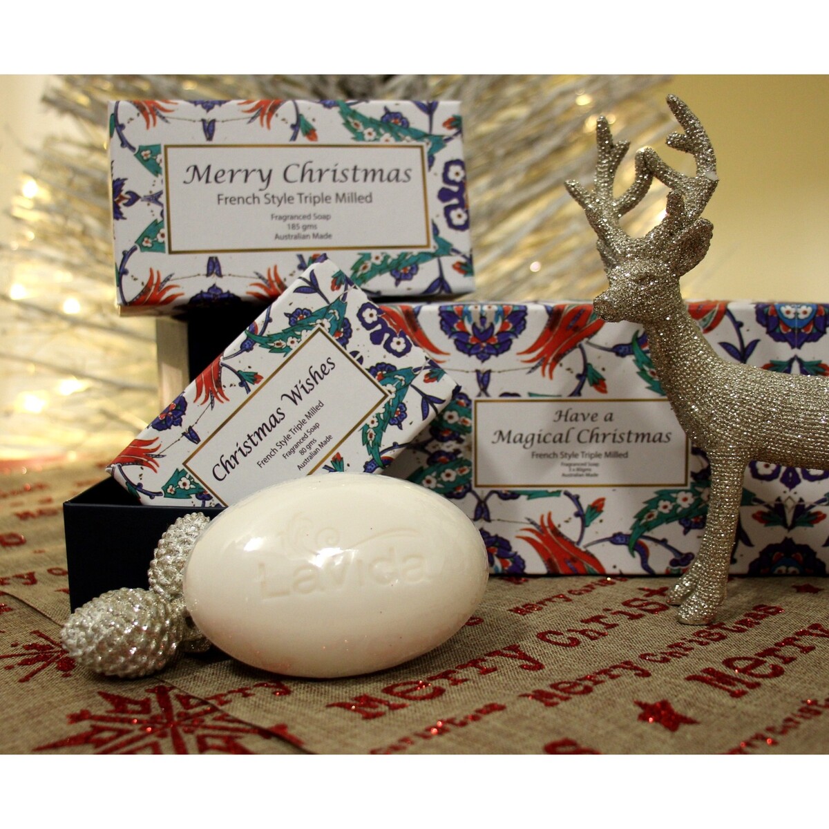 A luxurious bath is one of life's greatest pleasures. Our festive bath time selection is skillfully chosen to maximize the serenity of the moment and to give the bather a blooming good clean! Quality ingredients along with perfume oils are blended in this soap to produce non-drying and creamy moisturizing lather. It is triple milled so it doesn't get soft or mushy easily and lasts an amazingly long time making it an inexpensive luxury item. Solid soap also washes off much more easily so there is no chance of residue that might give irritation. This soap not only looks divine but also cares for the skin leaving it cleansed, moisturized and fragrant.