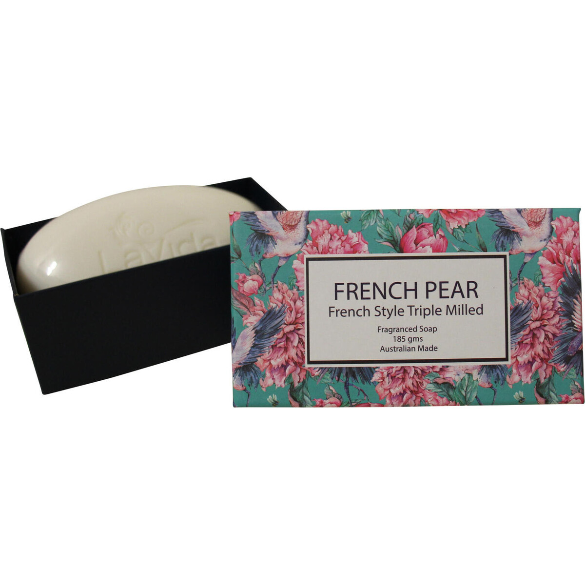 LaVida's French pear soap is produced in Australia by dedicated artisan soap makers using the traditional French Milling process. However, it is triple milled, meaning the soap is passed through the milling machine not once, not twice but three times! The result is this smoother, longer lasting bar with added sweet and juicy pear scent to complement the hardworking moisturizers in the soap. This will help the skin retain its natural moisture while covering it in rich, creamy lather leaving a fresh and luxurious feeling after a bath. The soap is individually boxed weighing 185 grams and has dimensions of 12cm x 6.5cm x 5cm.