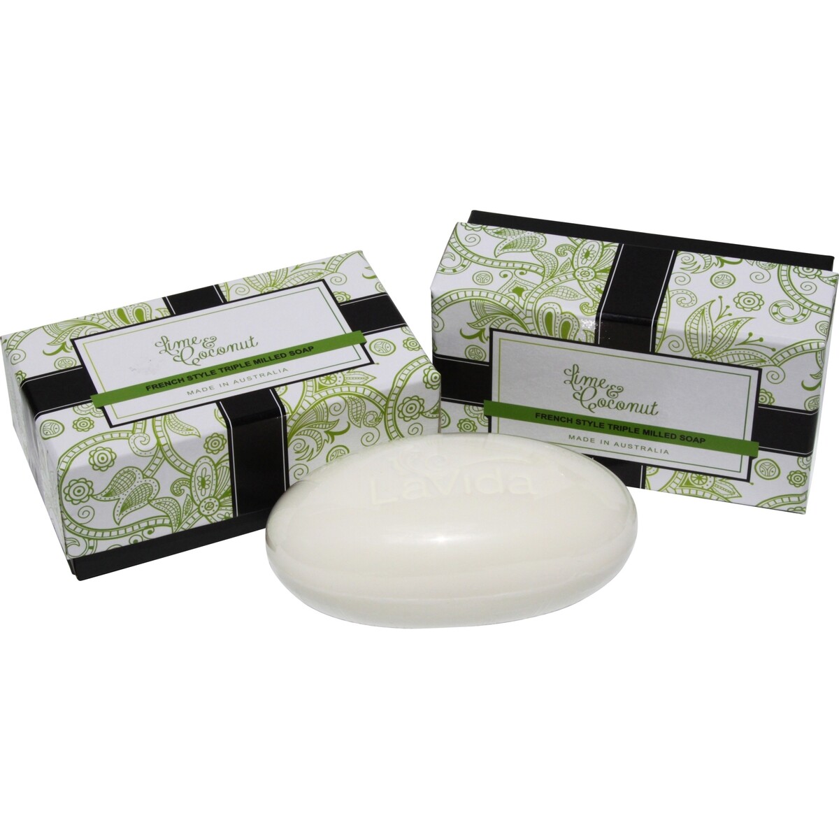 Soap - Lime & Coconut is an enchanting product that aims to incorporate luxury and freshness into the bathing experience. It comprises of oval - shaped soap weighing 185g. It captures exotic fragrance of the Caribbean and evokes reminiscence of tropical ecstasy. The triple milled soap comes in beautiful wrapping of green, black, blue and red. Buyers can expect to enjoy the creamy, luxuriant lather generated when this bathing item rubs against water. It is formulated in special manner to offer users a deluxe experience during the clean - up exercise. The soap has a creamy side to it and leaves one feeling moist on skin throughout the day.
