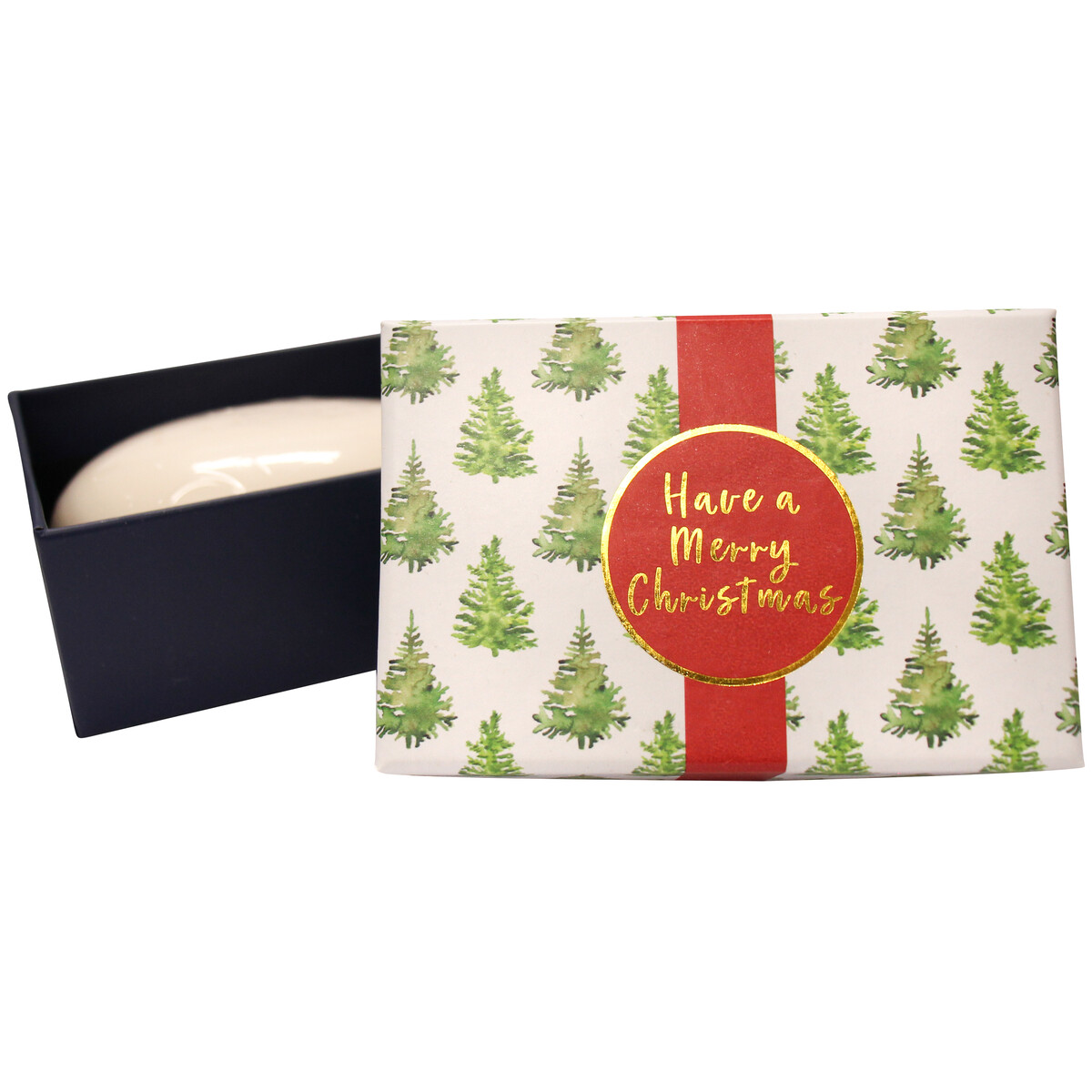 The little green trees on the white backdrop of the box-the print of a red ribbon and the wishes for Christmas time instantly connects the little gift to a moment of joy. Sometimes a gift is about how well thought it might be or how grand scale it might be but it’s more about a little sharing of coming together and a little gesture to remind someone that they are always in your thoughts- and this little packaged soap could be the start of series of little gifts that you could be handing out for no reason at all- simply as a little gratitude for coming together and being together. apart from the fact that it’s crafted with much care using high quality premium ingredients that makes it incredibly suited for a luxurious bathing experience-it’s a winner for the way it is presented and the fact that it’s something just about anyone would love to use.