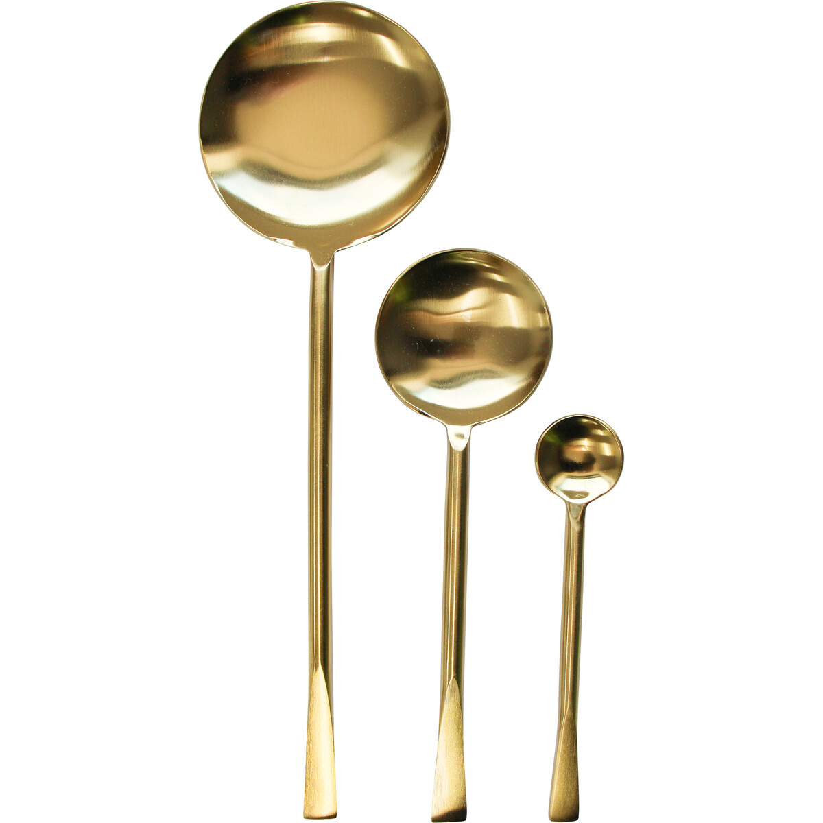 Smooth, shiny and visually irresistible, the Spoon Serving Set S/3 is an elegant set of serving spoons. All three spoons contained in this set are made is a design which contains both beauty and practical functionality as it does not sacrifice one for another. All three spoons are perfect for scooping food with their hollow end. Each is also resplendently coated in shining gold hue. Each of the three spoons is made in a different size ranging from large, medium and small sizes.