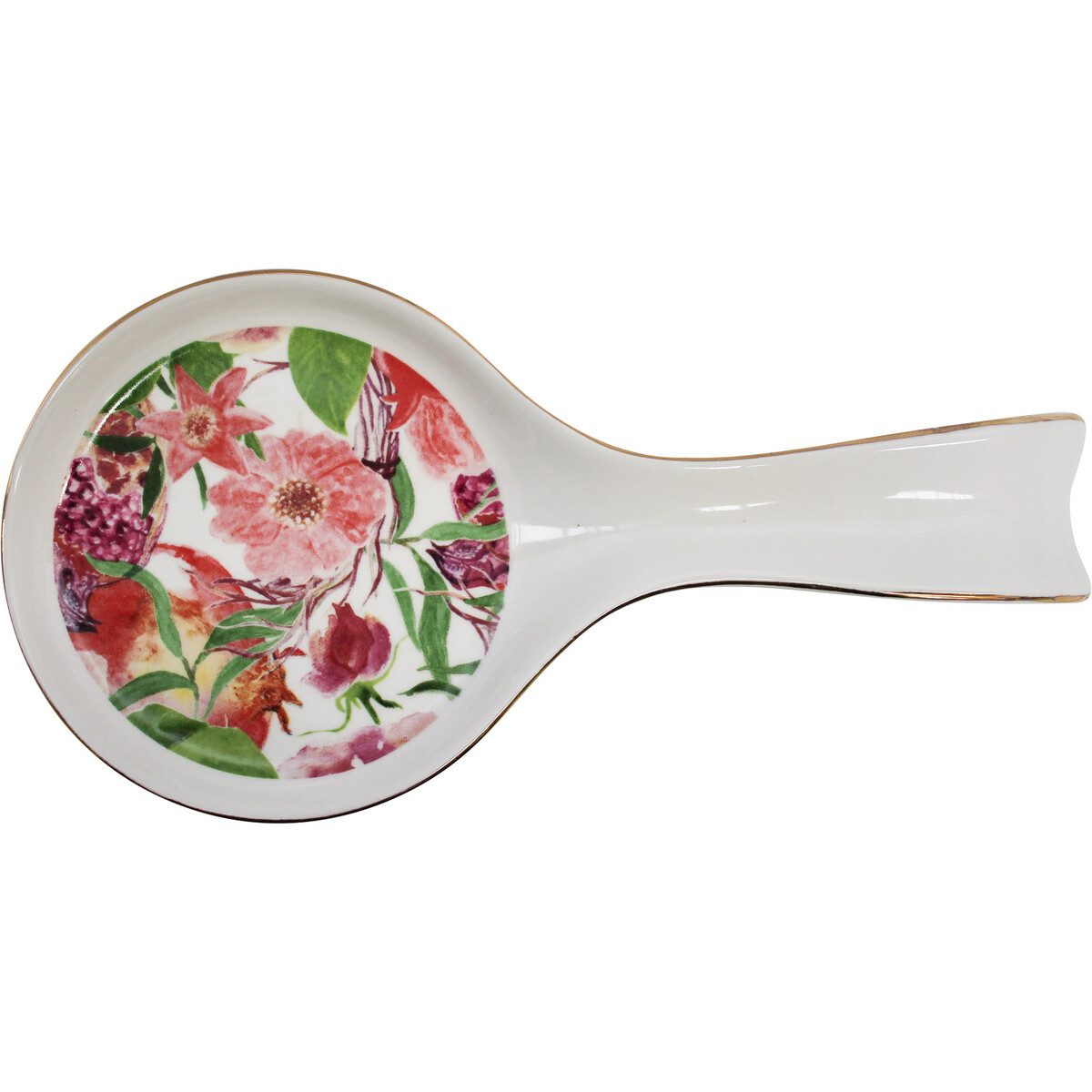 Adding a spoonrest to our product line has been a surprisingly strong way to complement our wide selection of bakeware, cookware, and kitchen tools. And this one - the Spoonrest Pomegranate New - is so much more than just a place for utensils. We’re big fans of multi-use pieces that don’t just look pretty but are actually practical. The pomegranate florals in rich pinks and reds stand out against the classic porcelain base, making this one a beautiful addition to classic or contemporary kitchens alike.