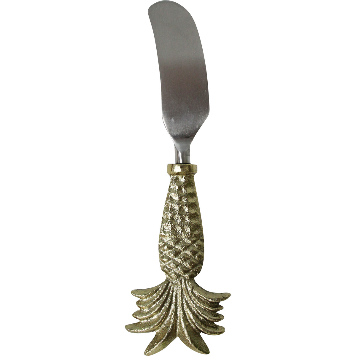 We all love pineapples. But, did you know that the pineapple fruit was first discovered in 1493 by the same explorer who discovered America - Christopher Columbus? This time around however, the discovery was first made in a Caribbean island known as Guadeloupe. This explains why most of us consider the pineapple fruit an exotic vacation fruit. And it is this same idea that influenced the crafting of this Spreader Pineapple such that the motif of pineapple which forms its ergonomic handle would make it a quick selling item. It is made through the artful use of stainless steel for the spreader and brass for the handle.