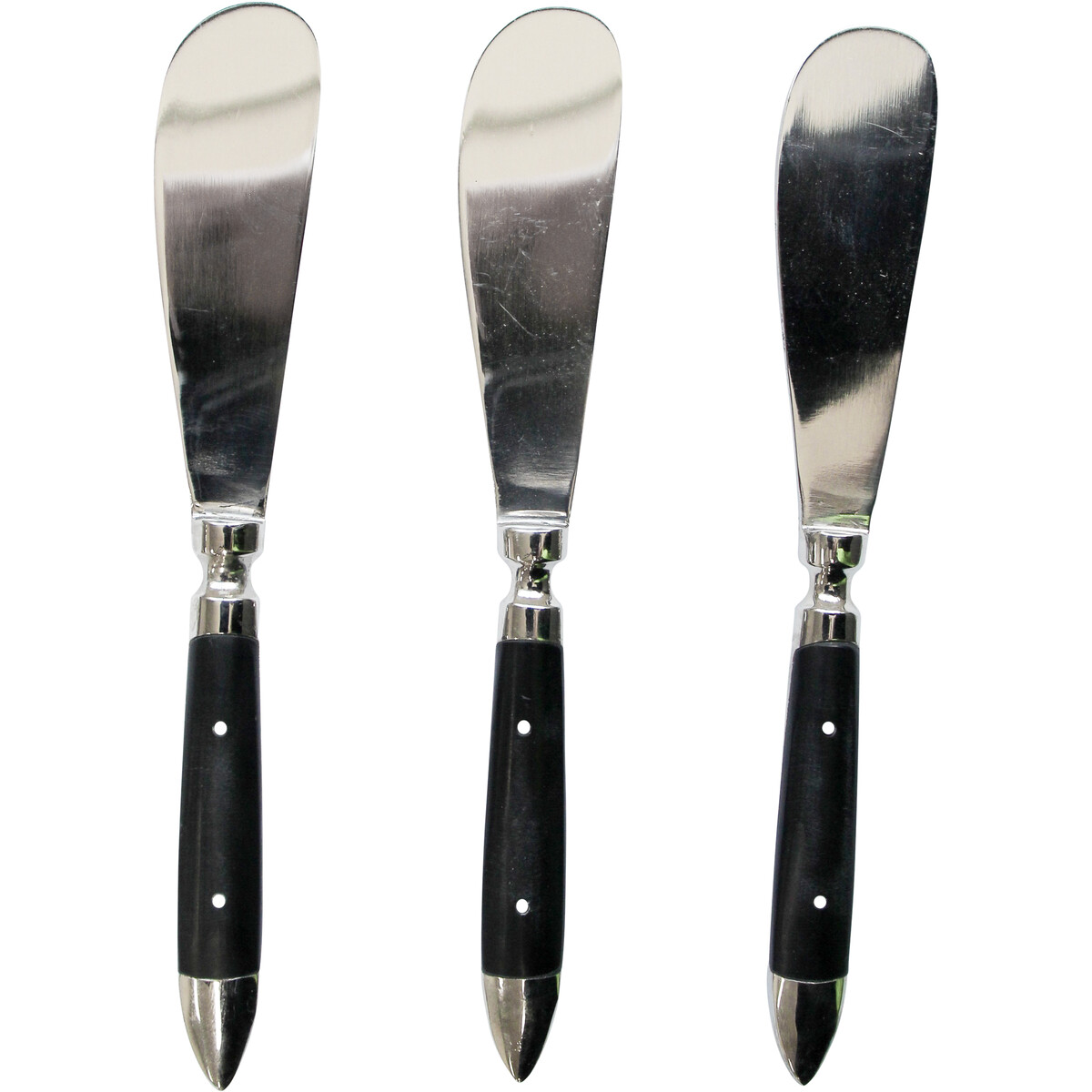 The blade is made using premium quality stainless steel material such that it would be perfect for use in scooping and spreading cheese on foods and snacks effortlessly and without leaving a mess. The ergonomic handle is painted and finished in classic black hue adding to the overall aesthetic appeal apart from the use and combination of brass and resin. Each of the three similarly shaped and designed cheese spreaders is made in a dimension which measures 4 centimetres wide and 14 centimetres tall. There are 35 of this set in every carton you buy.