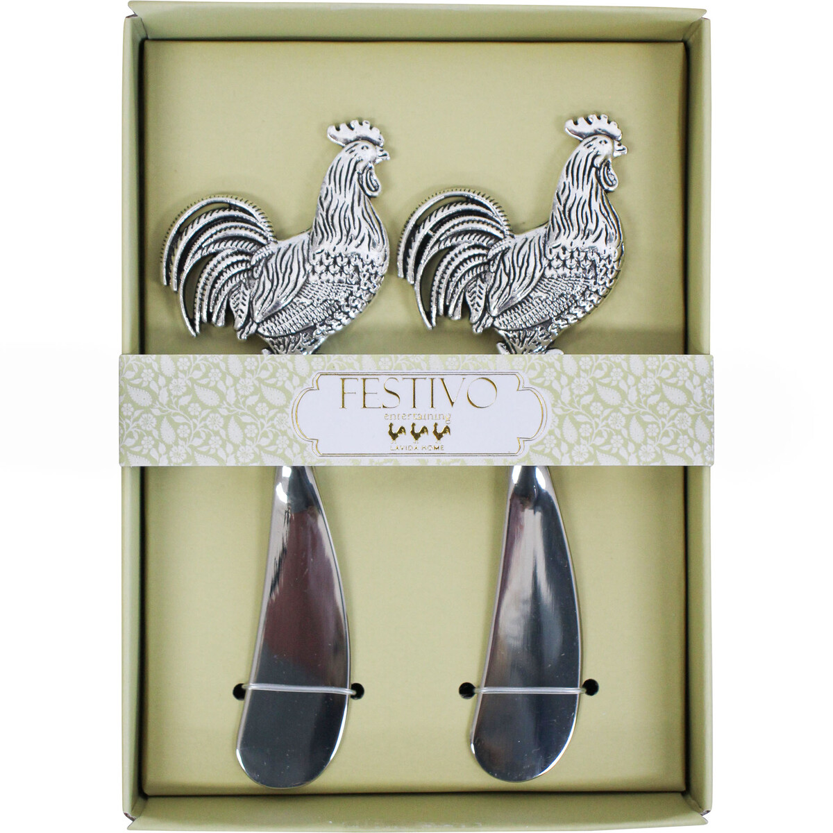 The Spreaders Rooster S/2 is impossible not to catch and sustain the attention of your customers upon just the first sight alone. This is because this spreader stands out from among the rest due to its ornate physical appearance and rustic infused motif in its design. The set contains three spreaders all of which are made of quality metal and natural acacia wood. It can be used in spreading jam, tomato sauce, mayonnaise, and so many more on all forms of food such as bread.