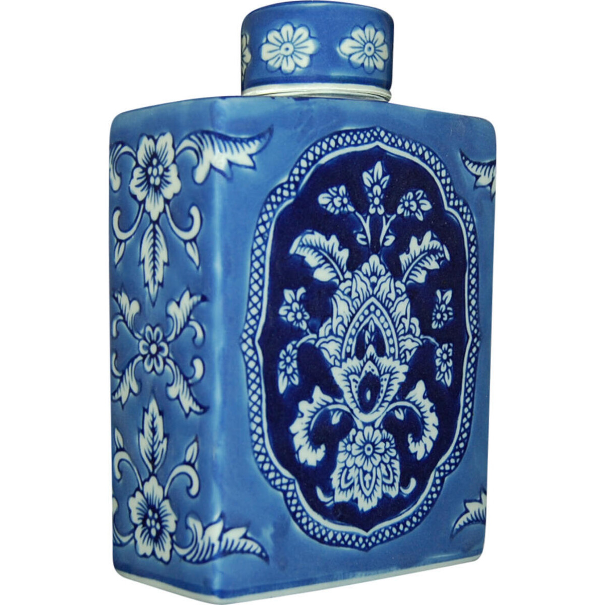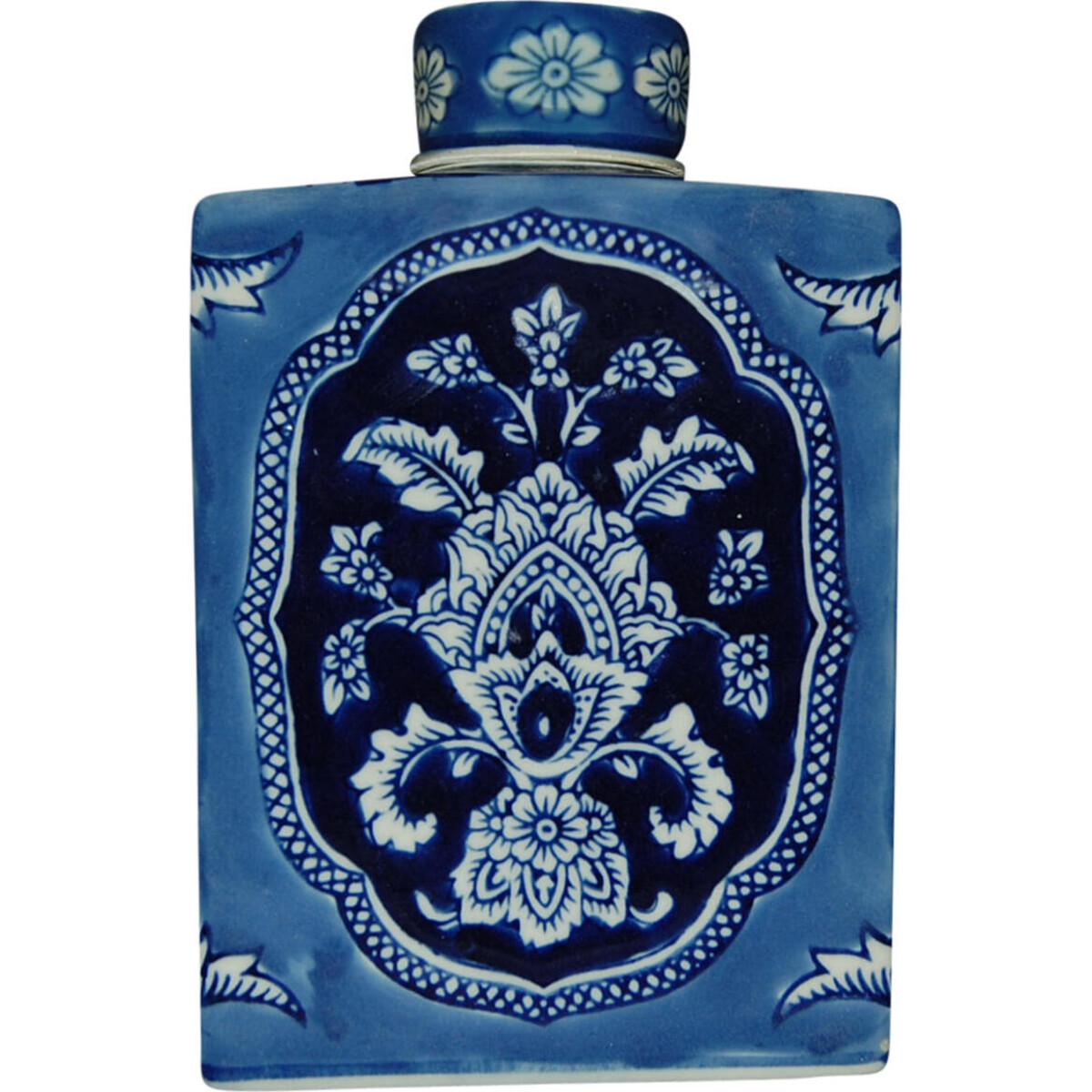 It's a handmade piece that is high on colour impact and design. Blends well with all kinds of interiors, even if it is Mediterranean or Chinese - oriental - it brings with it a feeling of past and things a classical. Beautifully shaped, the delicate stem, the top, the balance at the base and the structuring - all of its comes together in a splendid way. The square jar could be your means to decorate the console, the kitchen table, or the sideboard in the dining area. You could use it to store regular leaf tea or a collection of spaces and whatever that you feel needs a wonderful space to preserve it. The bottle stands well on its rectangular base. The height of the ice is 17 cm while its length is 12 cm and width at 6 cm gives it a slim feel that can be held in hand with ease. Wil make a bold splash of classic charm in any room. Such wonderful porcelain ices have limitless usage in the decor and make great means to enhance the look of spaces effortlessly.