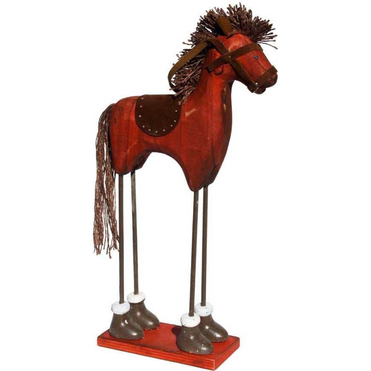 At 26 centimetres tall, this large Standing Horse in Red by LaVida is an ideal addition to a Christmas table, mantle or even a windowsill. Mounted on a wooden block, this primitive-looking horse is offered in a deep red stain over wood. Tall, stick-like legs are grounded in quirky brown booties complete with white trim. The horse's main and tail are crafted from stiff, dark brown, rope-like fibres. A dainty brown saddle and bridle complete the look. Use as a stand-alone piece or add one or more large or small horses to create a horse family as well as a focal point for the room.