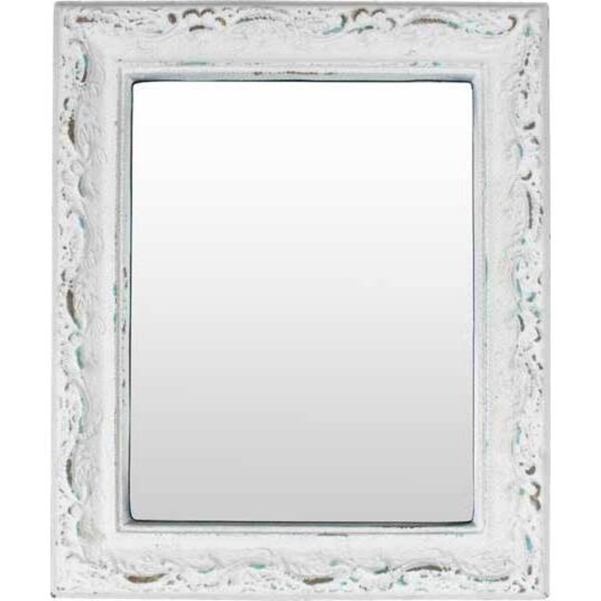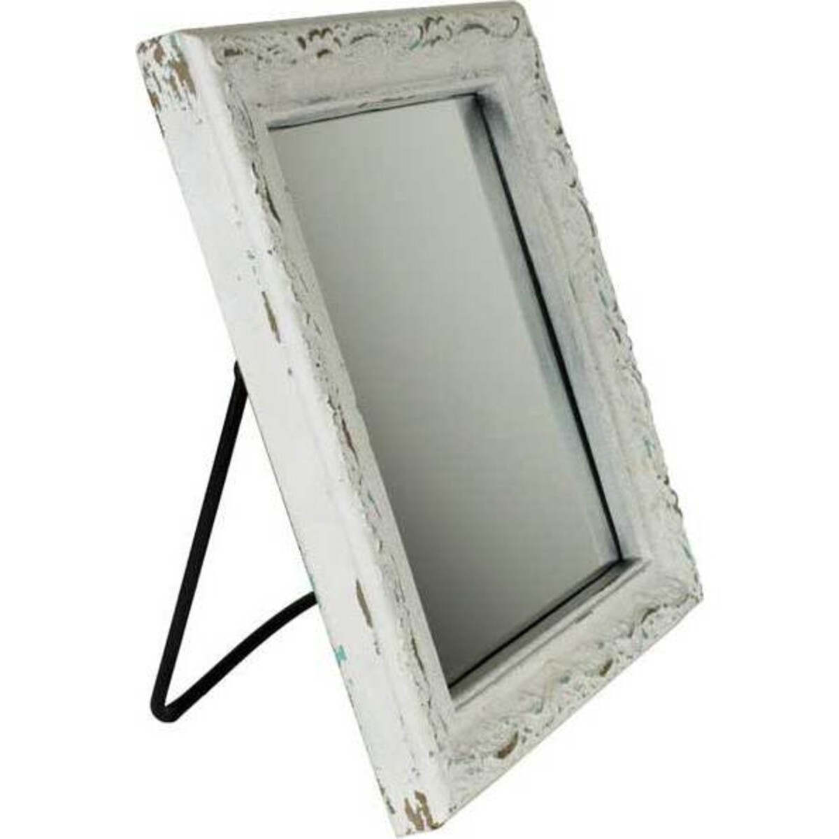 One's attention is immediately drawn to the shining effect of mirror seen on the edges which also has this vine shaped design running along the frame edge. The mirror is large and will look amply suitable for the side board and will add a distinct charm to that space. The ornate design is its highlight and its rubbed paint effect looks all the more appealing when seen in conjunction with the mirror's design detail. Its stand is designed to give the mirror stability. Kept on the dresser too will make it look fabulous and allow it to work its utility far more. Adding more feminine charm to any room will be easier with decor highlights like this mirror - as this is one piece that will look pretty in little girl's bedroom or in the boudoir. It will look as much a part of the decor as any other decoration piece and in fact will add the look of cool elegance that very few decor items can do. The larger version stands at 32 cm in height and about 27 cm in width.