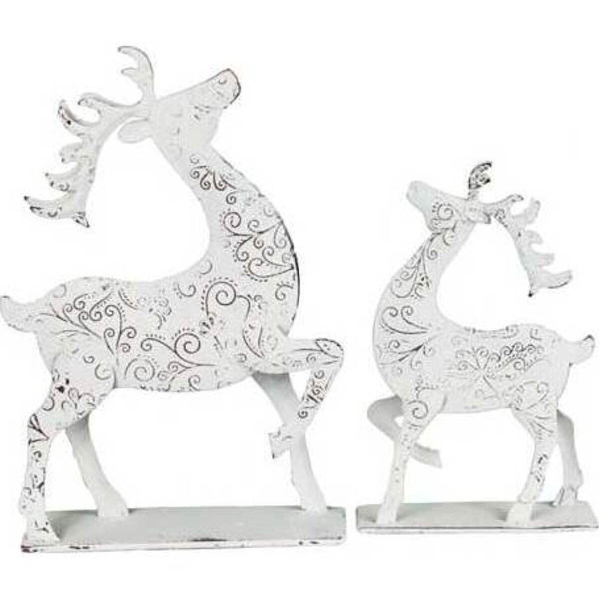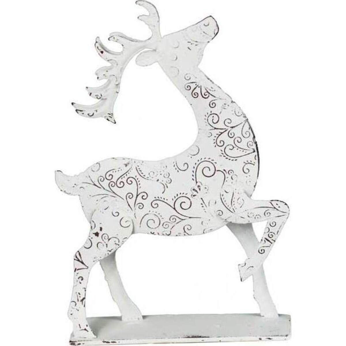 The vintage white paint peeling in places, Onda looks a picture of grace and energy. This reindeer crafted from metal weighs about 440 gm, is about 22cm in length and 16 cm in width, making it perhaps the finest reindeer in town! As a standalone it would look proud and elegant and placed next to all the festival paraphernalia, it will most certainly add a great deal of accent to nay space. The enchanting and rather intricate design all over the body makes this piece all the more magical in its look. Would blend in with all the Christmas finery as much as fit in with the shabby chic decor interiors. The royal antlers, the nose tipped up in the air and the legs ready to take flight - all the wonderful, makes him a favourite and enigmatic qualities of Onda makes him a favourite of thanksgiving decor each year.