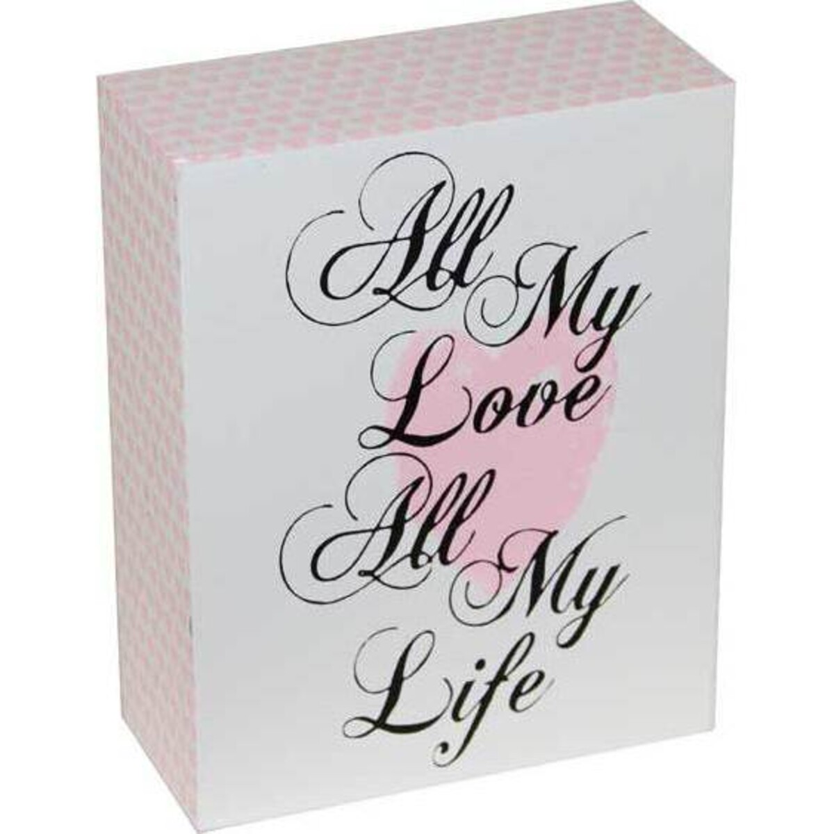 Sign board are a much loved in the modern and contemporary environment as they allow one to create a personal canvas of emotions and thoughts and allow one to share deep emotions in casual sort of way. A relief in fact from overly dramatic d?ɩcor that are too artful, these simple but true emotions come right through the compact little messages printed on MDF. This bin particular with its pink heart design is surely going to hit its target. It's about love and that is one emotion no one can quite escape. Make this either gift you would want to give to people you love and care for or simply add it to your personal space and feel the charm of these words that can make all the difference to the way life seems sometimes. About 12 cm in eight and 10 cm in width, the pink heart at the center is a graphic that will simply sweep you off as will the tiny pink hearts that makes up the sides of the sign board that says - All My Love All My Life.