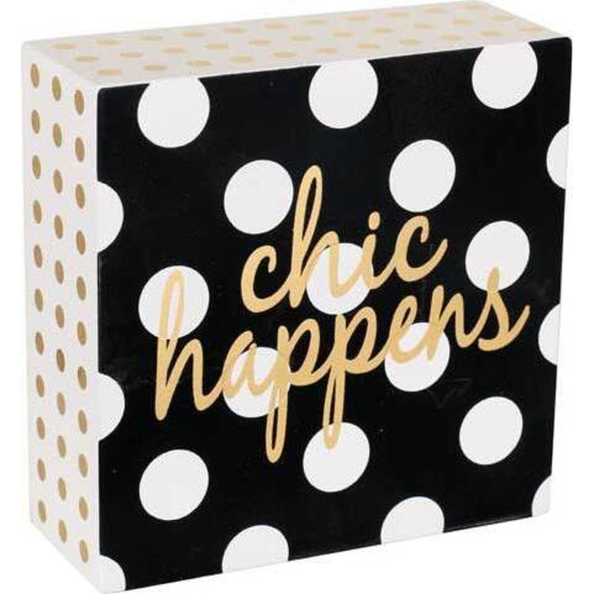 Inspiration can come from the simplest of things and we should admire them no matter what. No matter how big or small the product/décor may be, it is the feeling that we have that shows how important it is. This standing sign is an elegant display of showing that "chic happens." With this beautiful sign designed with polka dots and a black/white/tan colour scheme, it will add a vibrant aesthetic to your home. This sign has dimensions of 10x4x10 cm, which allows for it to be a standing item on most tables whether it is on the top shelf or middle/bottom shelves.