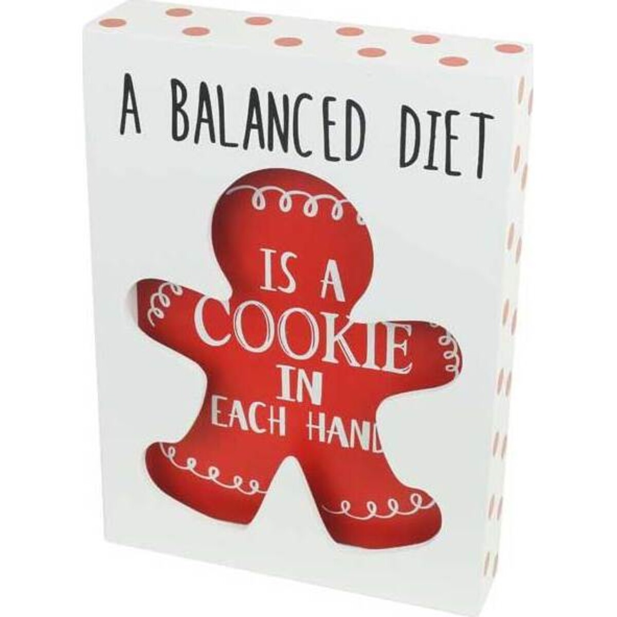 Keeping one's promise to follow a diet can be such a grind - the constant calorie counting and the burden of always making the right food choices - and on the flip side the completely relaxed attitude towards it - while some can easily exercise restraint, some still live in the hope that such a time shall never come - this wooden standing sign is reminiscent of the times of childhood when all that a healthy diet could ever mean was to have a cookie in each hand and nothing else. An ode to those times of innocence when good food was equated to good life. The white paint on wood, the polka dotted edge and the writing in white and black with the inimitable favourite from childhood - the gingerbread man are all details that makes this sign board so endearing - the kind that would look great as much in the kitchen as in the children's room. The sign board is 24 cm tall, 16 cm wide and has a depth of 5 cm that gives it adequate base to be able to balance itself.