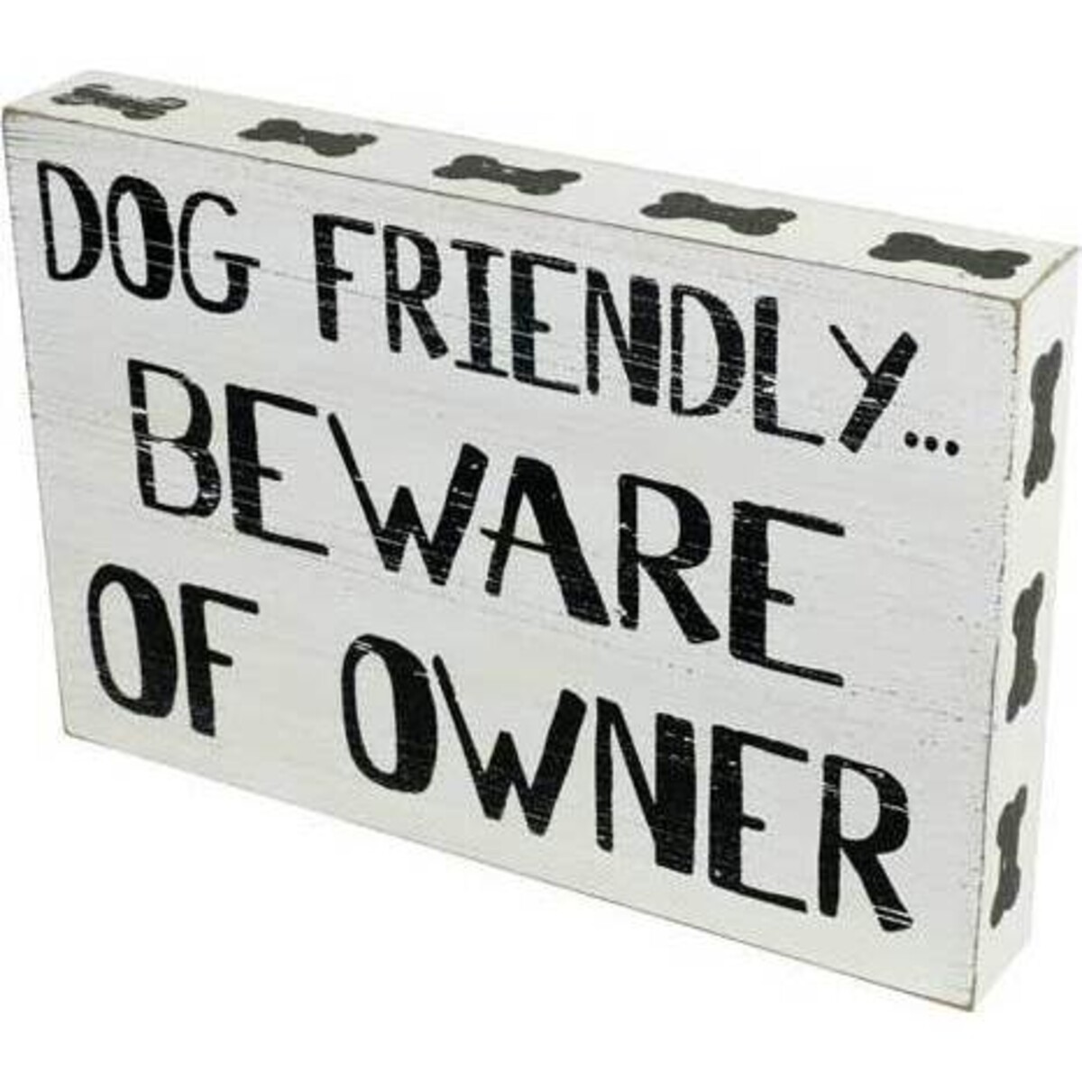 Quirky signs boards that declare a love albeit overtly is the right way to get home the message and this board manages to do that and put a smile on anyone's face while doing so. The sign board is in white and black and manages to create a riveting graphic representation with the help pf dopf bones all along the edges. The board has dull white colour that has black paint print with the words clearly visible in bold writing - Dog Friendly.... Beware of Owner!!!The sign board is 20 cm tall and 29 cm wide and has a depth of 5 cm which happens to be the surface on which it balances. Could be kept atop tables or simply hung from any place as well. A simple and easy way to make one's home seem a more fun kind of space with a message that intensely conveys your love for dogs.