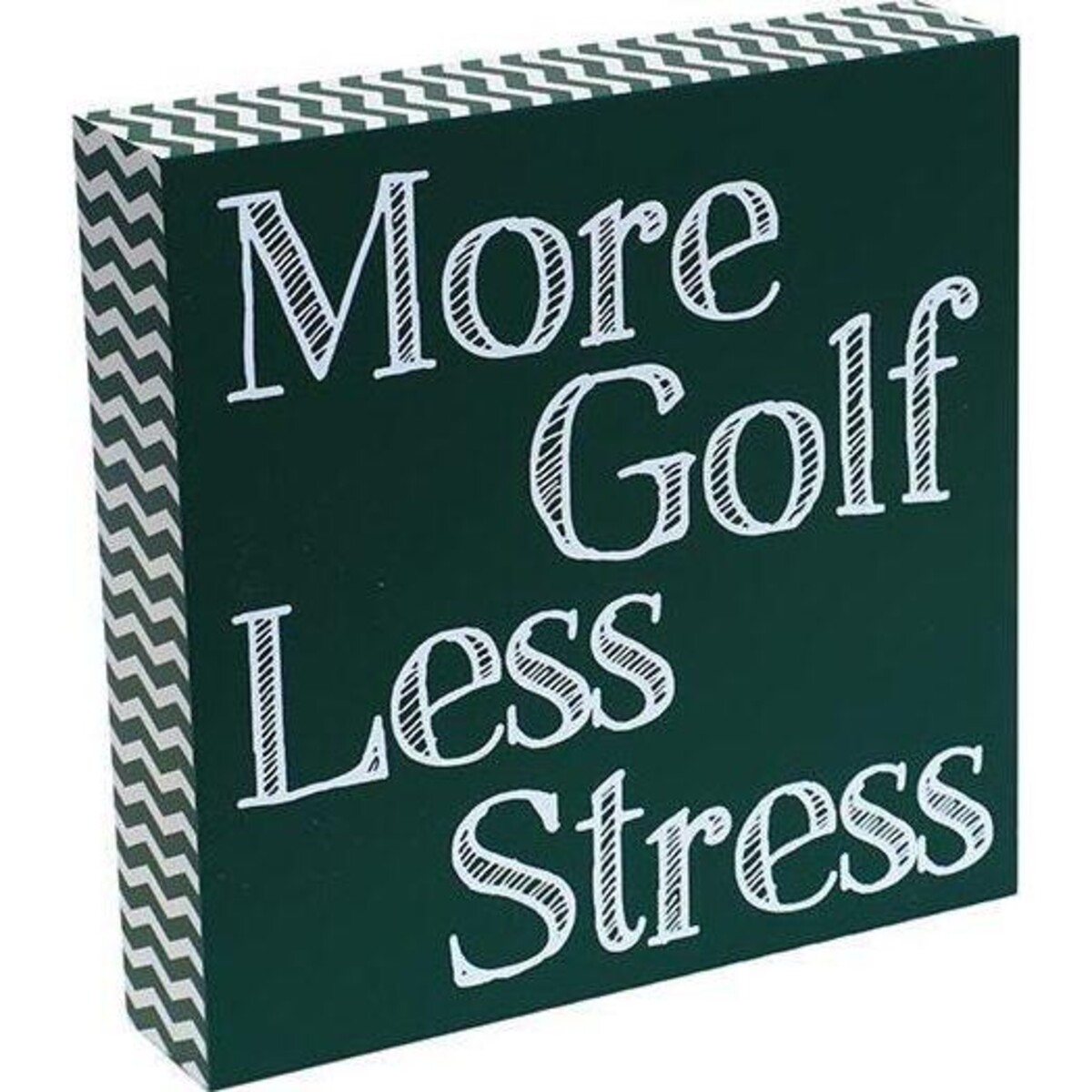 Make a splash of ideas and thoughts with simple but very impactful set of sign boards that could help you declare a love that is close to your heart-those simply ecstatic hours that you spend at the greens, when you play against yourself and your skills-this sign board makes your love for golf reach a high through a dedication created only with words but the manner in which it is spelled out makes it rather profound. Add such signs in your spaces and create your own personal stamp of identity-an identity you should be proud of for having played the game and how! Send out a message filled with positivity when you say-More Golf Less Stress-for you know how completely elated and less stressed out you feel when you go golfing. This signboard has been created from MDF and is square with 16 cm dimensions. Could be placed on mantles, your study or the corner that you have decided to do up with golfing memorabilia.