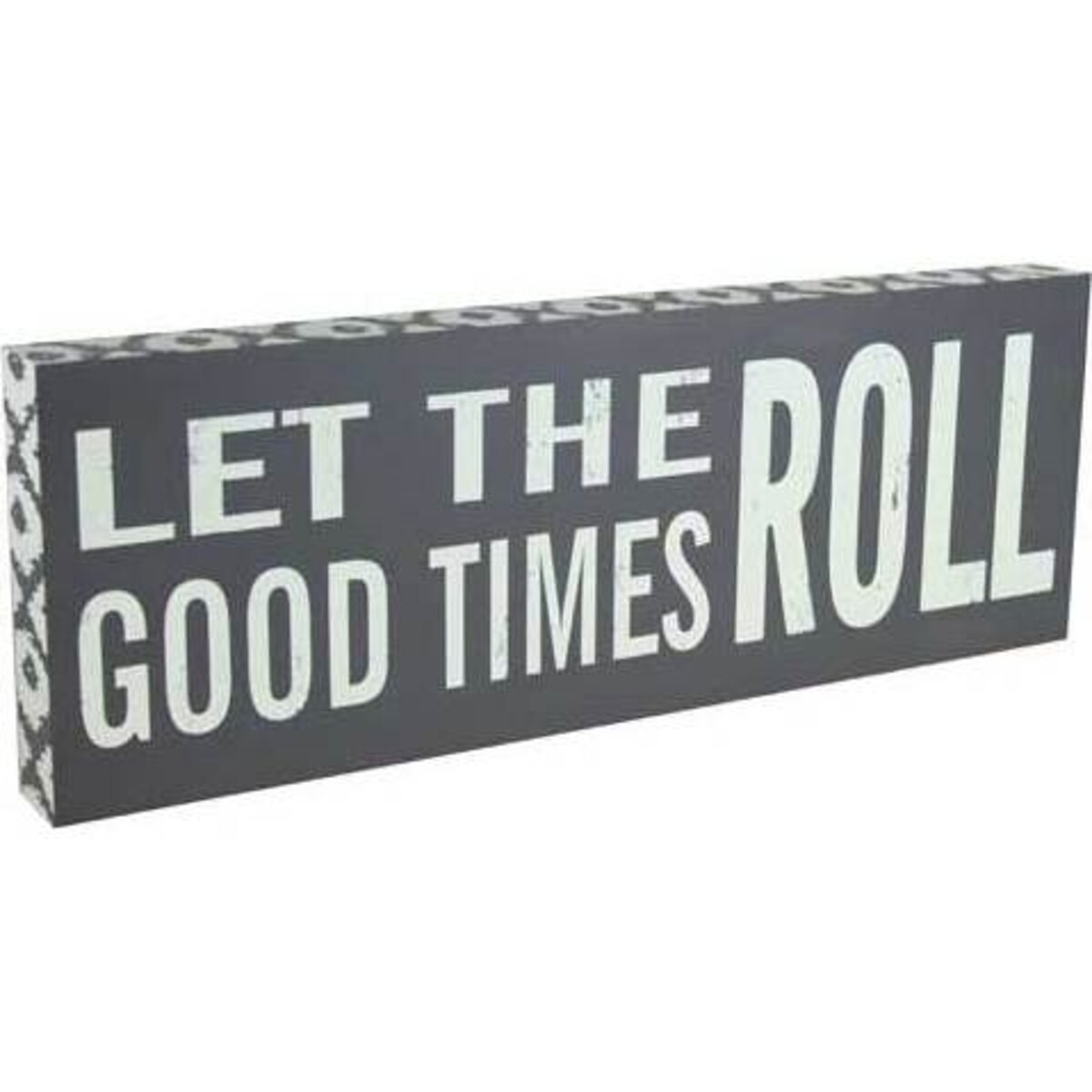 This 47cm long sign which is 17 cm in wide has a breadth of 4cm which allows it to stand quite stably on flat surfaces adding good cheer with its rather simple message - " Let The Good Times Roll". Instantly on reading this anyone would feel the positivity all around. A great way to add cheer to children's room, restaurants, or even as part of part decor. The material used is wood and the paint has been given a rather vintage feel. The font used is clear and legible and the lettering is large enough to be read from a distance. The backdrop is in a dark colour that makes the white painted letters look even more attractive and clear. The letters though not ornate looks like a period piece that is trying to refresh the simple artistry of the good old times.