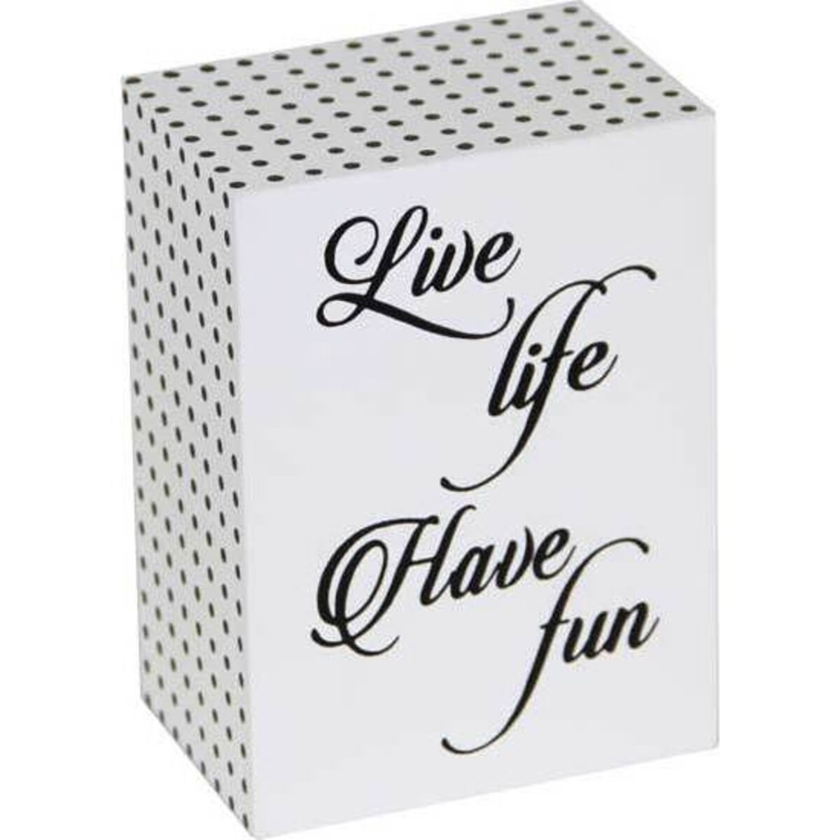 Lavida has always offered accents for homes and interiors that rings true with the contemporary need of people to add a relaxed and informal look to spaces. This could be done with ease with messages signs boards and Lavida has on offer quite few that anyone would love to won. This freestanding sign boards rests on its width which is about 4 cm and has its own distinctive pattern that can be seen from the sided as well and so placing it anyway would make all its dimensions look very attractive. The face of the message board is in white and carries the words that truly rings as genuine - the kind that connects instantly - all it say is - Live Life , Have Fun - instantly allowing one a more relaxed air and a feeling of not being too high string about anything. Such fun and lighthearted signs are a great for any part of your home - the kid's room, the kitchen counter, the bar or even the entryway. Any space would liven up with words as cheerful as this board has. A gorgeous colour effect and finish has been given to each of these sign boards on offer from Lavida. A compact little accent for even the smallest of spaces.