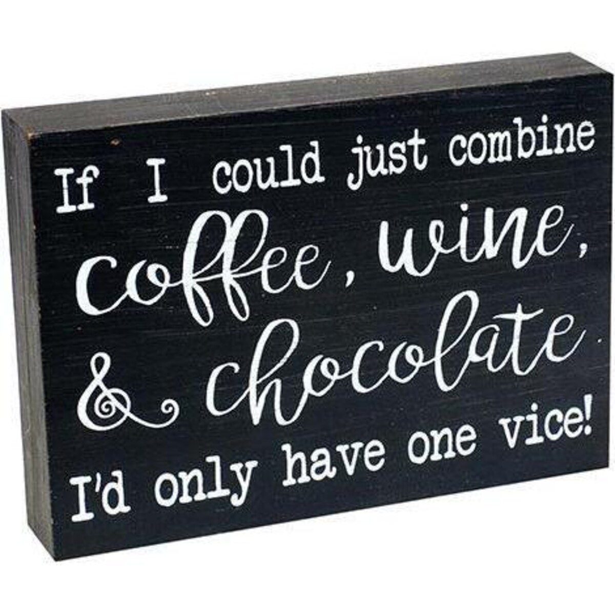 Go on and enjoy those endless cups of mocha and the go chase that rare wine and yes, we will not say a word if you steal the last bite of chocolate from your child-after all knowing you, you would never quite consider them vices. Make your personal spaces reflect your personal favourites- chocolates, coffee and wine and make it known to the world. Here is one of the best ways of doing so with the help of this sign board that spells it all out for you-as it says without mincing words what you would love to declare loudly as well. Made of MDF, this freestanding sign is great for all of those that you call you very won and would love to use to personalize them as per your likes and dislikes. Here is just that perfect signboard that has it all in a few words. Use this free-standing sign board and place it spaces such as the mantle shelf or the study table and see how it grabs eye balls with its rather dark and prominent presence.