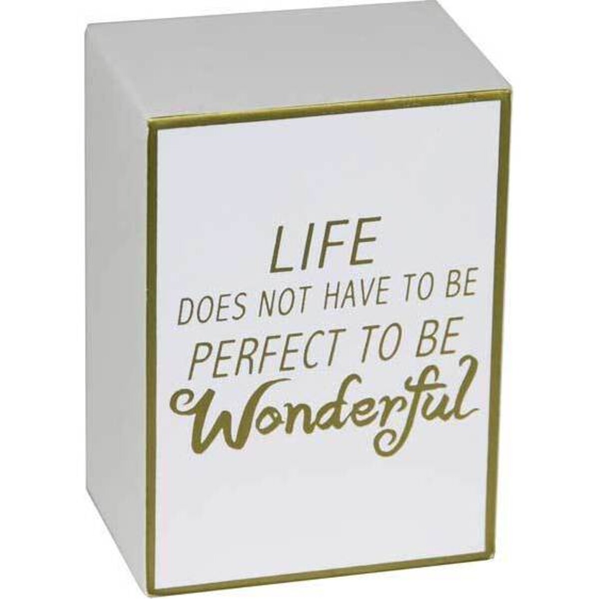 Make spaces come alive with their own personality by adding this sign board that adds that hint of positivity through words that are loaded with such meaning. Made from MDF, designed to stand well balanced on table tops, mantels or in any corner giving more meaning to spaces, these message board are truly great in terms of value they add to the surrounding. Find spots that needs something little extra to get its mood going and adding candid and spirited message which asks you to accept life's little wonders and cherish want we get from life. The gorgeous creamy white colour of the exterior is highlighted with a golden border all along the edges thus drawing more attention to the words printed in a rather ornate style. The sign board stands at height of 9 cm and has width of 6 cm while its third dimension the depth allows it to balance well. The lettering has used such font that it is clearly visible and appears as if it has been hand painted. Will retain not just its beauty but also the great credibility these words hold in our lives.