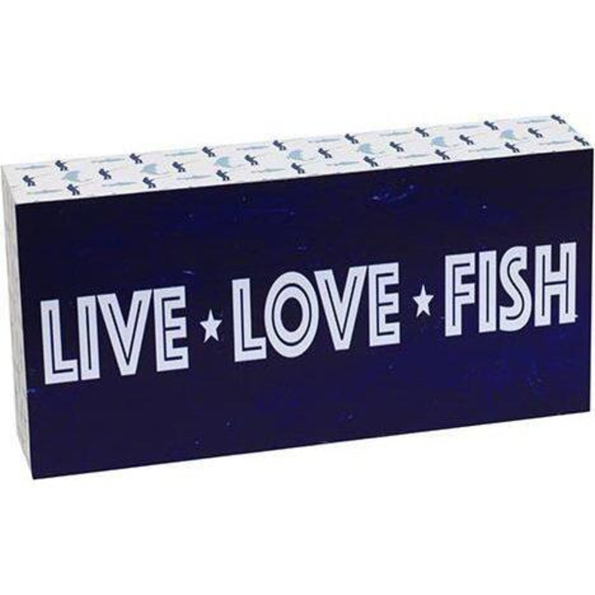 Said in the same breath - the three words that in some way interconnect as for an angler to live is to love fishing and vice versa. This depth of love for fishing comes from the manner in which this time is spent-deep in thought, focused on relaxation and the ultimate challenge and ability to go home empty handed with a new hope for another day. Fishing for many is life's philosophy- a catch is a prize that is as unpredictable as the windfall that life sometimes brings you. This sign board has a lovely deep indigo blue that has words printed in white letters-bold and eye-catching much like the way a declaration of love ought to be. The three words convey the depth of an emotion that is strong and very much in keeping with what an angler would feel in his heart. In some ways, it is also a declaration of freedom-the freedom to enjoy one's free time and the free will with which life should be led. The sign board is crafted from MDF, has bright colours and clear graphics with excellent printing on the face as well as the sides.