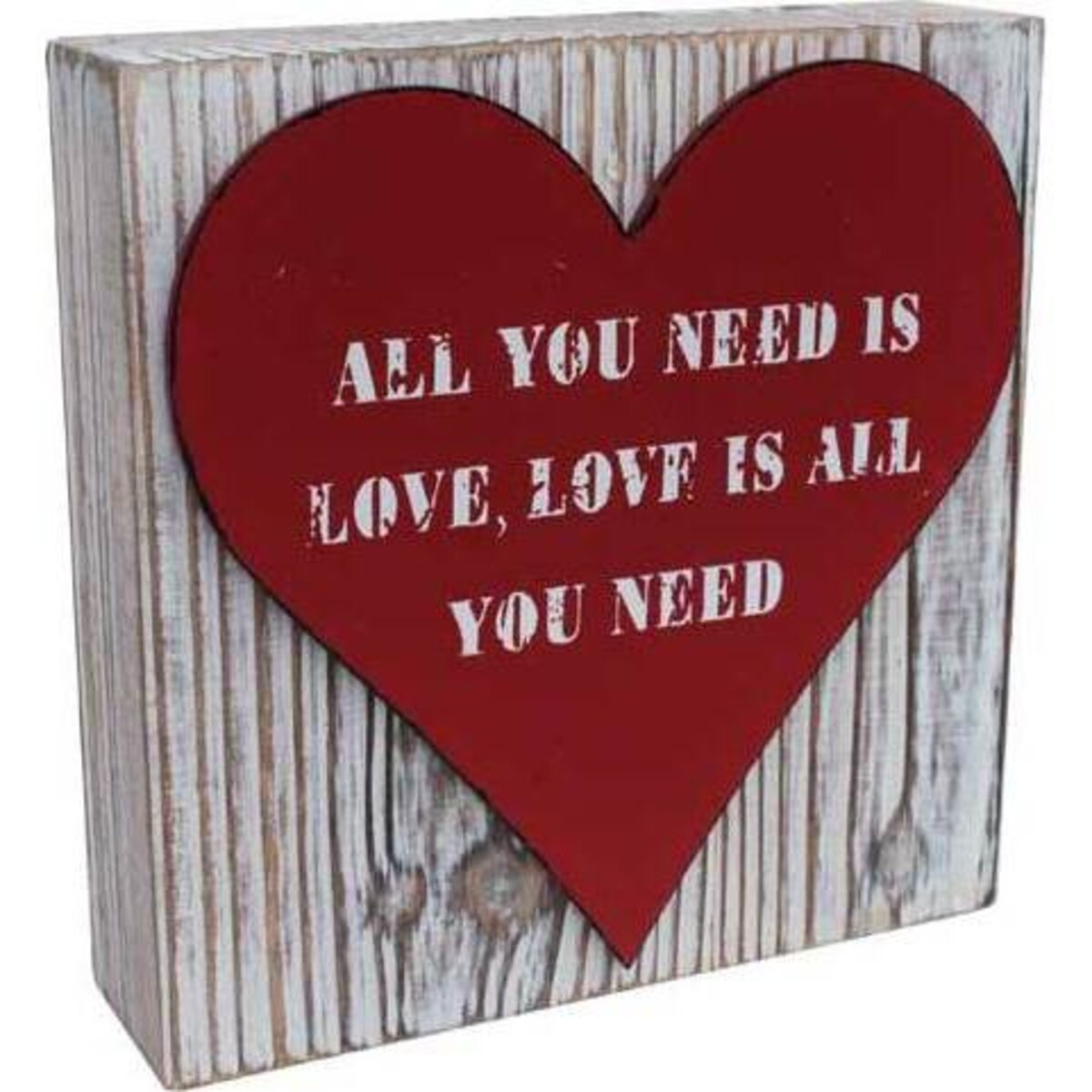 This lovely sign consists of a wood block with a red 3-D heart in the front that reads in white lettering, "All you need is love, love is all you need." It's the perfect reminder to look at on a daily basis right when you need it the most. While this piece is ideal to use around Valentine's Day, it's so beautiful, you'll want to keep it up year round. This Heart Standing Sign is great to use in your home, but it's perfect to pass along as a gift to someone who could use a sweet little dose of love in their life.