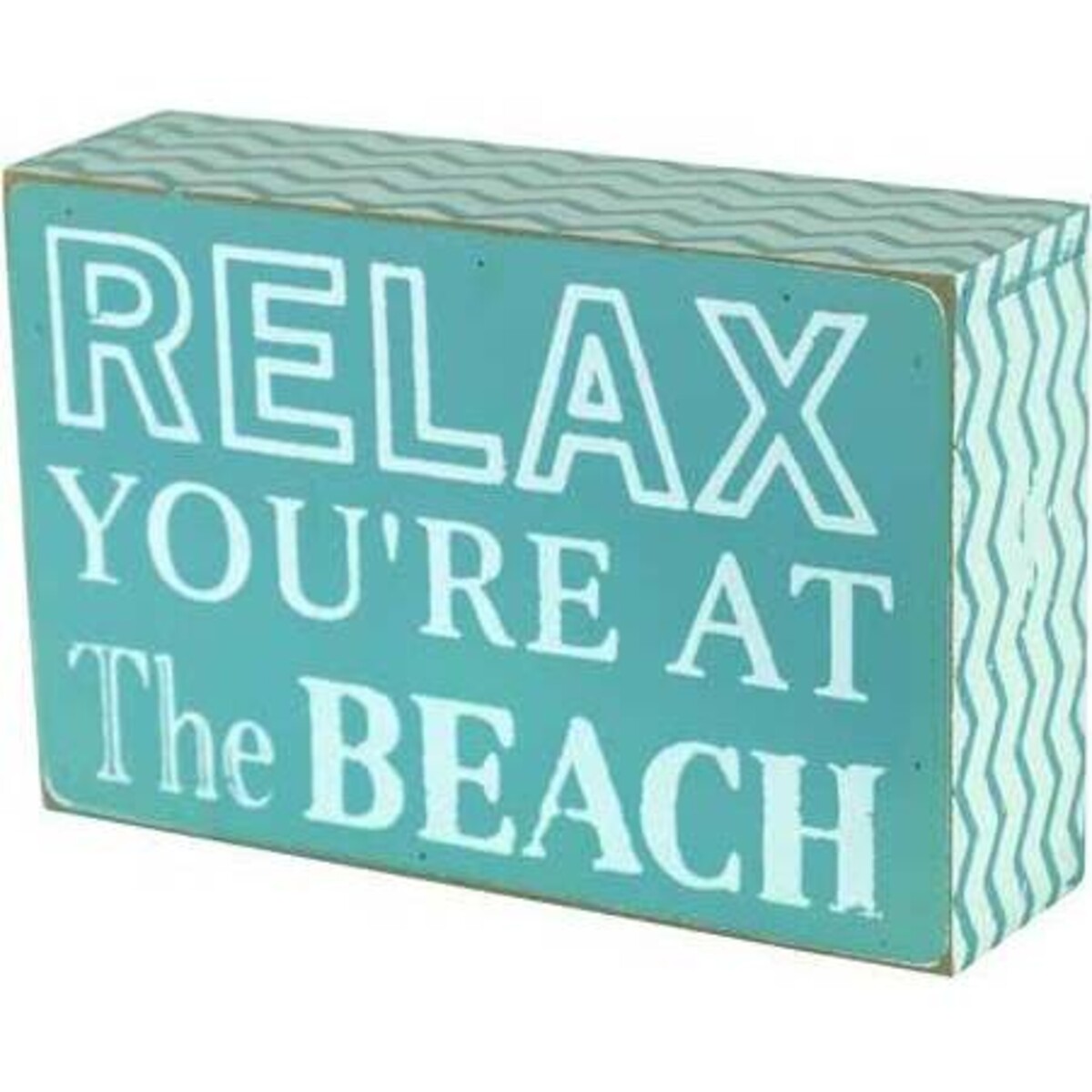 Life it seems is all about time crunches, meetings and deadlines and awaiting the next phone call that gets you started on a new project-but this sign board with its tiny little presence will from time to time remind you to reconnect with life-to "Relax ?You are at the beach". It's delicate pale blue colour like the cornflower coloured skies, the white print like the gently rising waves and its very look so very relaxing is a welcome sign to see every now and then when one needs to wind down the hyper activity and slip into the holiday mode. Such sign boards made from MDF could be placed near the study desk, in the children's room or anywhere in the house where you want to build in an air of complete relaxation-maybe even the backyard where you have a hammock and a tall palm to give you shade.