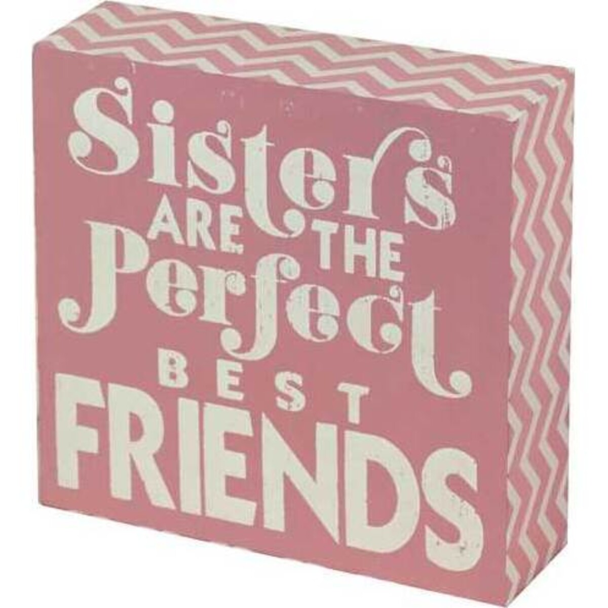 Be it in your own home with two daughters in it or your own sister for whom your love is simply boundless - this wooden self standing board will make those emotions flow effortlessly. Signboards have always been easy means of expressing feelings, ideas, quirky thoughts and all things that seldom find expression otherwise - so this love that one feels for a sibling this special has been made easy to show through this pretty pink and white patterned signboard that comes in nifty size - square in shape with 15 cm length and width and a seating side of 5 cm allowing it to be placed with ease on its flat edge. The sign board could be placed in the bedroom, on study tables, mantles, or gifted to a sister who is truly a special person. Add this to spaces that one calls personal and make them come alive with the warmth of true love.