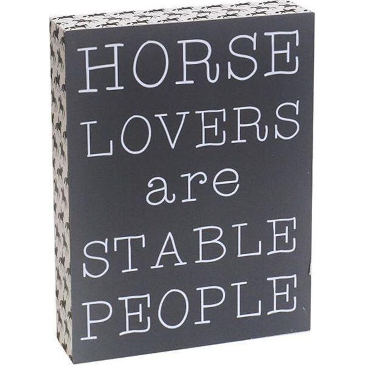 Making signboard part of the interiors helps you make an impact in terms of what thoughts and ideas ride alongside in your personality and this signboard certainly makes it amply clear that your love for horses in unquestionable. The MDF crafted piece has a lovely colour effect and the font chosen is also the kind that complement the very look that has been created. Being freestanding, this block kind of sign board could be placed on any flat surface and dark hued face with its white lettering instantly catches your attention with its vivid contrast. The tall signboard is about 20 cm high with a width of 15 cm, giving it much stability in terms of balance. The sides on which it rests, has print of horse riders that gives it a beautiful dimensions and detail. This equestrian themed sign board could be presented to any horse lover who would surely display it with much pride.
