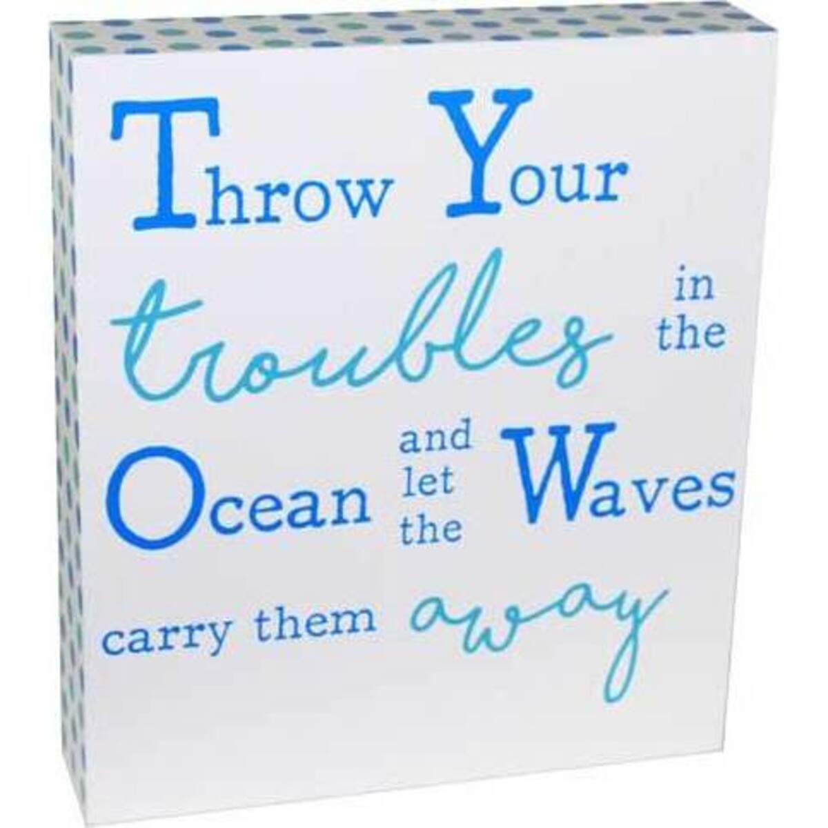 Nature based sign boards can be part of any décor and more so if you love not just its graphic expression but also what it could mean to many. Here is a sign board that expresses the love for the ocean for a lovely reason - a cleanser of worries . The sign board which has been designed to be freestanding has some great words printed in blue that makes for an attractive picture in all. The plaque is all of 23 cm tall and 20 cm wide and truly makes one want to throw ones troubles away. Here is a lovely gift for anyone who loves the ocean and its boundless bounty that can touch our inner happiness. Add this and many such coastal or nautical themed articles from Lavida's collection to make some stylish changes to the interiors. The brilliant blue font albeit informal, almost like a scrawling handwriting makes the words seem as if spelt out by someone in reality.