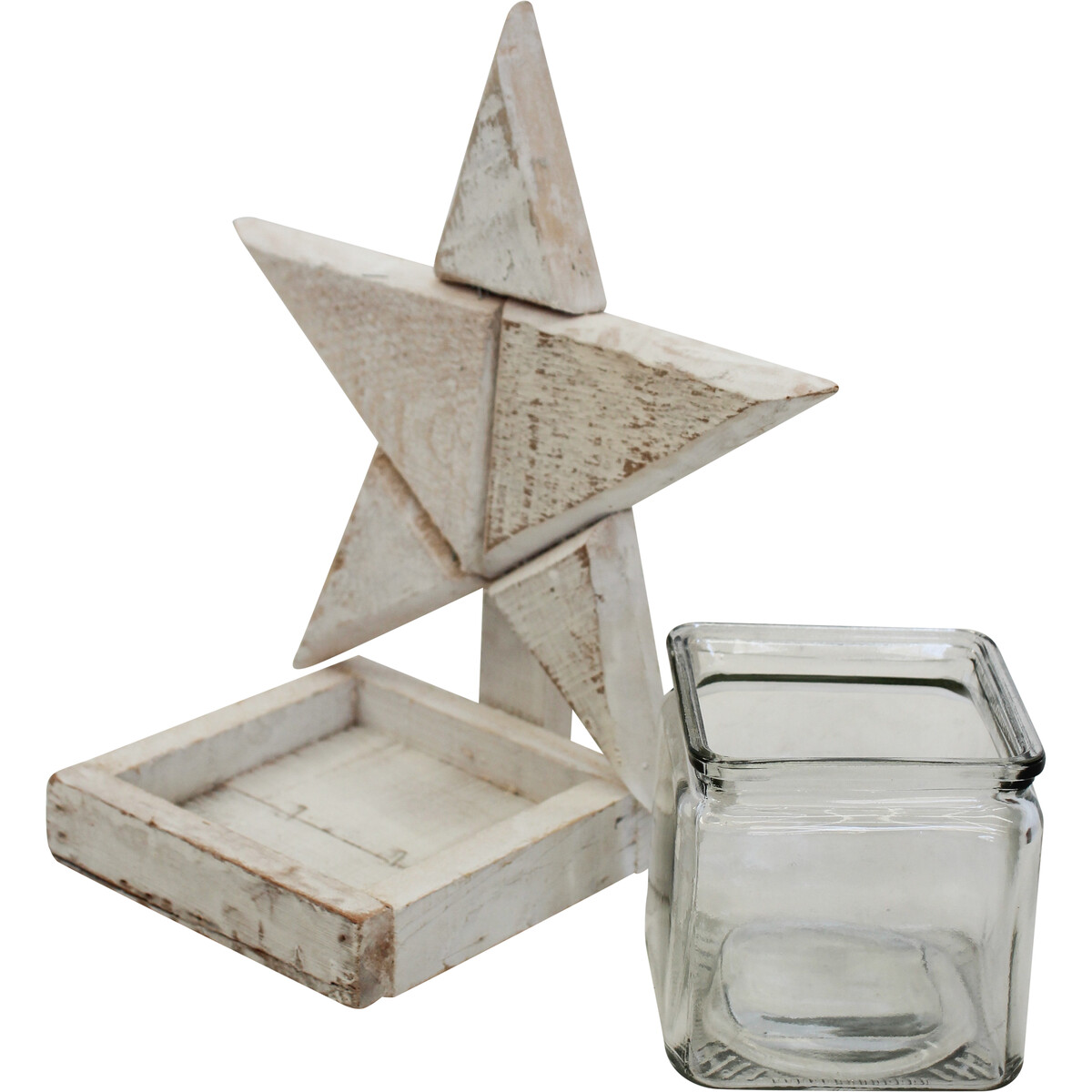 We're always on the lookout for something a bit different and our Star Candle Holder Lrg is just that - a great way for your customers to add some character to their space. The chunky, natural wooden star looks good on its own, but pop the included glass candle holder in the front, and it makes for a real eye-catching display. At 25x26x26cm, it's large enough to make a statement but not so big that it won't fit on a shelf or table.