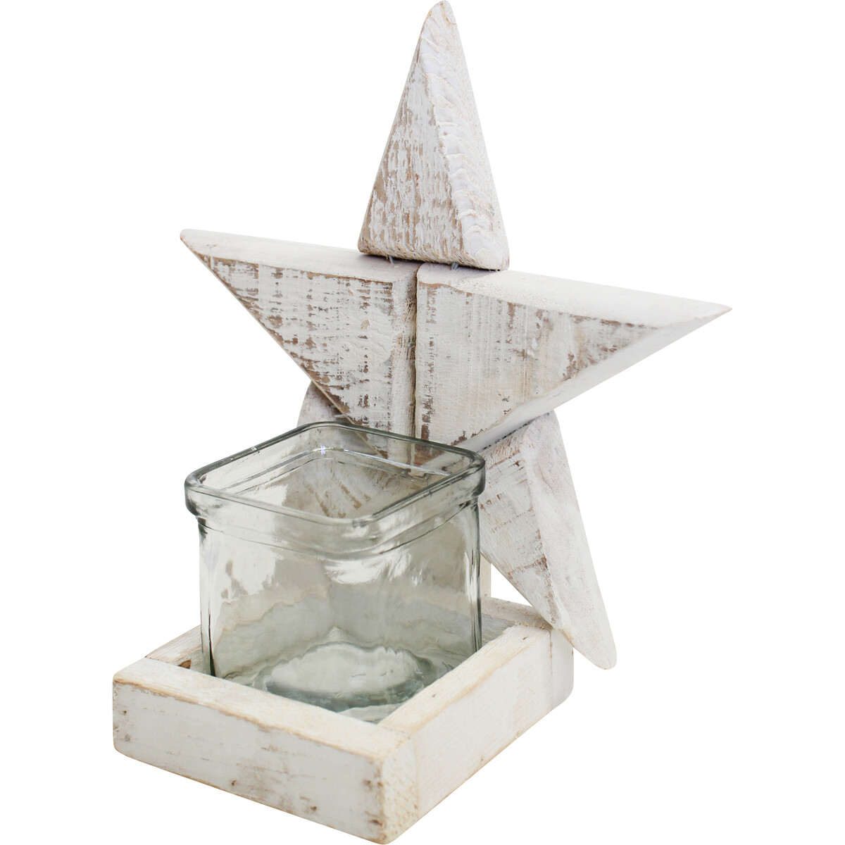 Our Star Candle Holder is a real charmer for those who want a rustic country feel in their home. At 22x13x23cm, it’s crafted from distressed white-washed wood and glass and holds a votive or small tealight, bringing a lovely warm glow to any area. We think this is one that would do really well with customers looking for something unique to give as a gift or feature in their own homes - there’s just something about that star shape that draws the eye in!