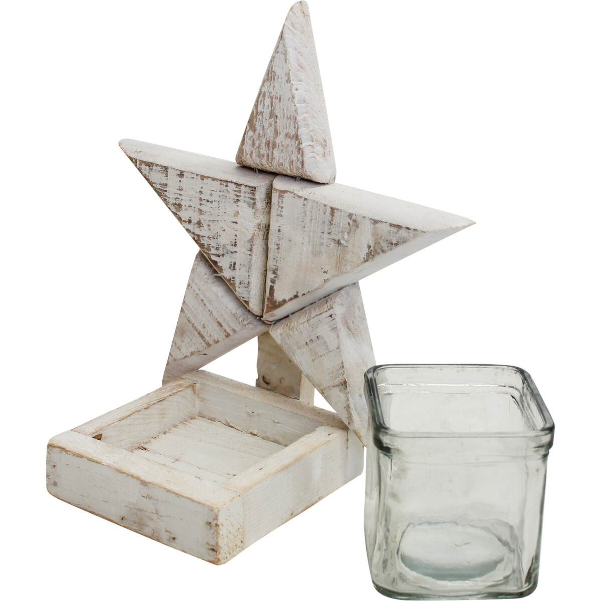 We really love how much character this piece brings to a room. Our Star Candle Holder, sitting at 22x13x23cm, offers a sort of rustic warmth with its weathered white star backdrop and clear glass insert. It’s crafted from reclaimed timber and glass, so there’s this wonderful uniqueness to every item - that kind of hand-finished charm your customers can’t find everywhere. No two are exactly alike, and you know that’s something shoppers will actually hold in their hands and talk about.