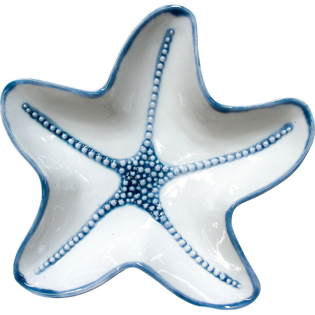 Add a splash of colour to any beach theme tabletop with this versatile plate that really makes a statement at a table setting. Measuring 20.5cm in length, 18.5cm in breadth and 3cm in height, this lovely plate is crafted from ceramic with a detailed design and painting and a contrasting blue rim to the white and blue interior. Pair this with the other items in the beachside range for a coordinated look and a wonderful ocean themed display to impress your customers. This functional and decorative plate's fun coastal design makes it a collectible item and a perfect gift item for any sea-faring enthusiast or starfish lover!