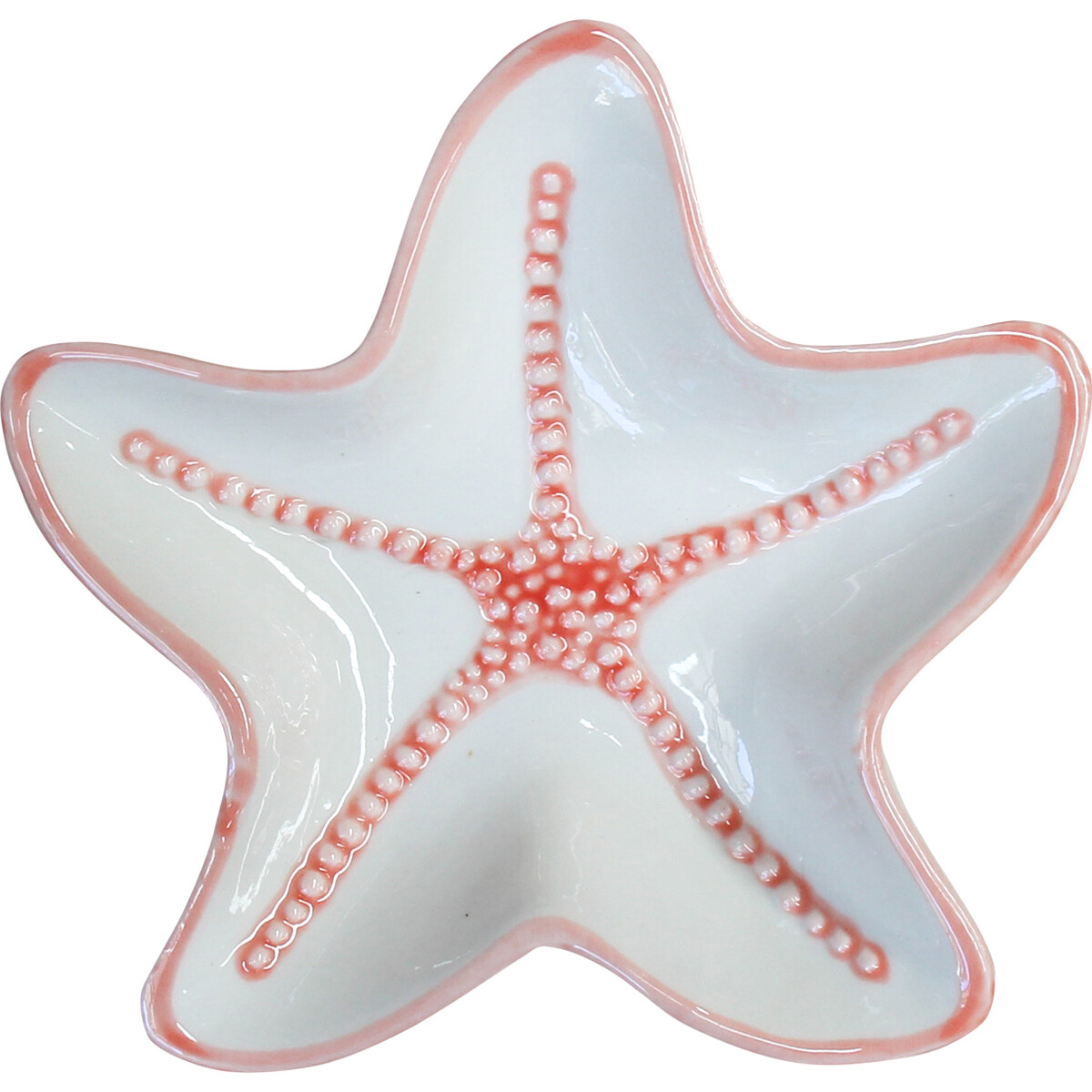 It's the shape-the every five pointed shape that makes it instantly connect with that creature whose presence in the ocean waters give sit certain mystique made from fine quality ceramic that has been fired to this gorgeous sheen, this gorgeous little piece is a great means to make your table top look far more glamorous place this next to your bed-perhaps on the bedside table and let it be the trinket tray-or place this atop the console and drop of your keys in it-so simply use it to serve little tid bits. Your love for things marine gets a whole new boost of excitement with the artefact quality ceramics on offer. This tiny little plate in a starfish shape will regale you as much with its unique shape as with its perfect finish that comes from its handcrafted nature. All of 14 cm in length and 13 cm in breadth, it ahs a depth of 2.5 cm , making it great means to serve nuts and all kinds of finger foods as well.