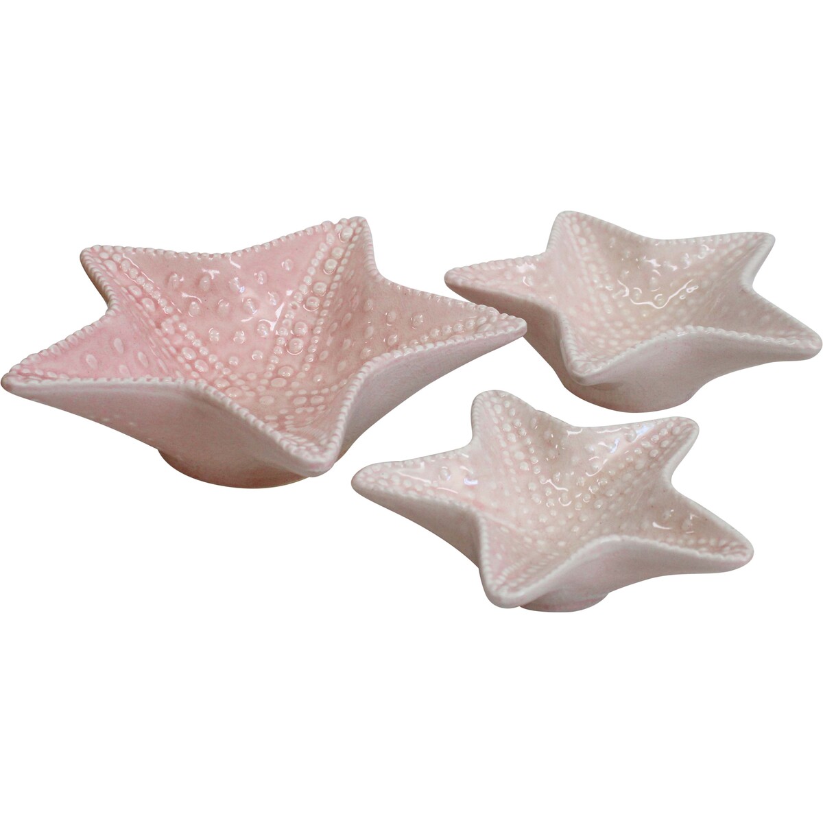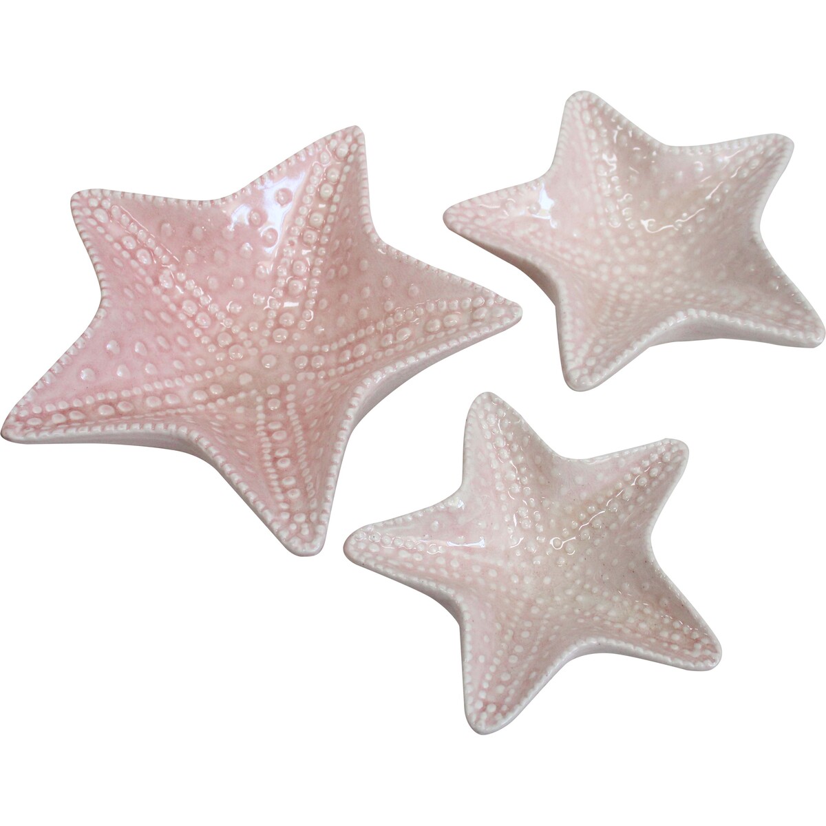 Introducing the Starfish Plate Set of 3 in Pink, a beautiful and functional addition to any home. These stunning plates are made of high-quality ceramic and feature a unique starfish design that is sure to impress your guests. The set includes three different-sized plates, making them perfect for serving appetizers, desserts, or even as decorative pieces in your home.