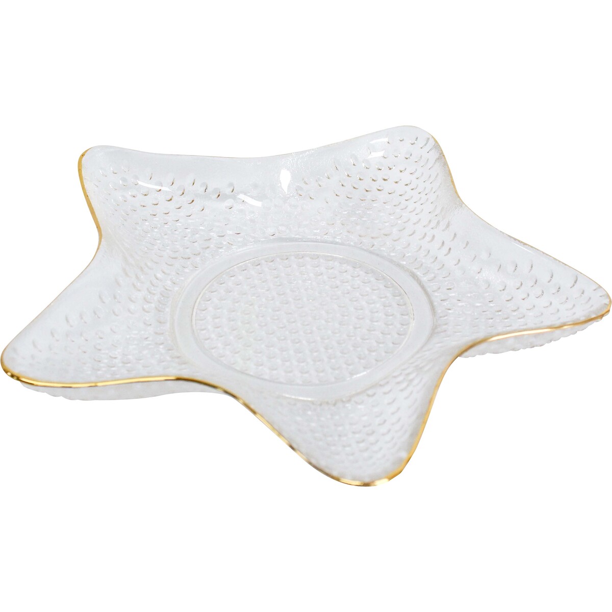 Every curve and contour has been sculpted with an unwavering commitment to beauty, revealing the hand of a master craftsman. The stunning starfish shape, adorned with a resplendent gold tip, forms a focal point of unparalleled uniqueness. It's an element that's bound to draw gasps of awe and inspire conversations. The dotted pattern, like a sprinkling of stardust, adds an extra layer of elegance. It's a touch of refinement that elevates any table setting, turning an ordinary meal into a banquet of visual delight. Whether displayed as a standalone piece, commanding attention from a place of honour, or used to serve culinary creations, the Starfish Plate is a declaration of sophistication and cultivated taste. It's in the details that the Starfish Plate truly shines.