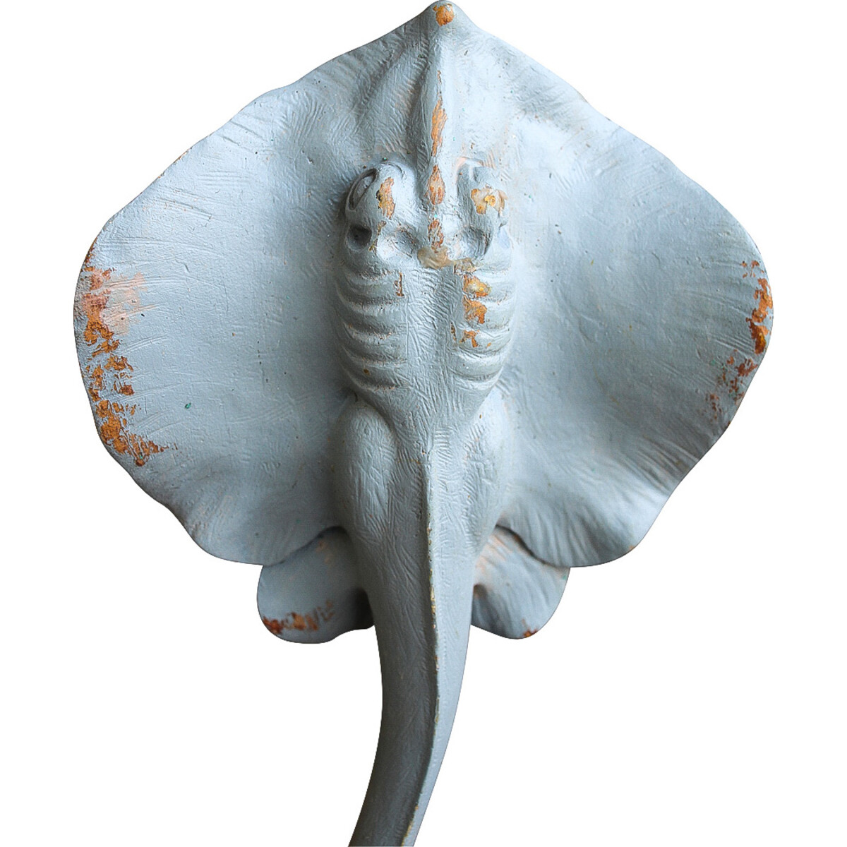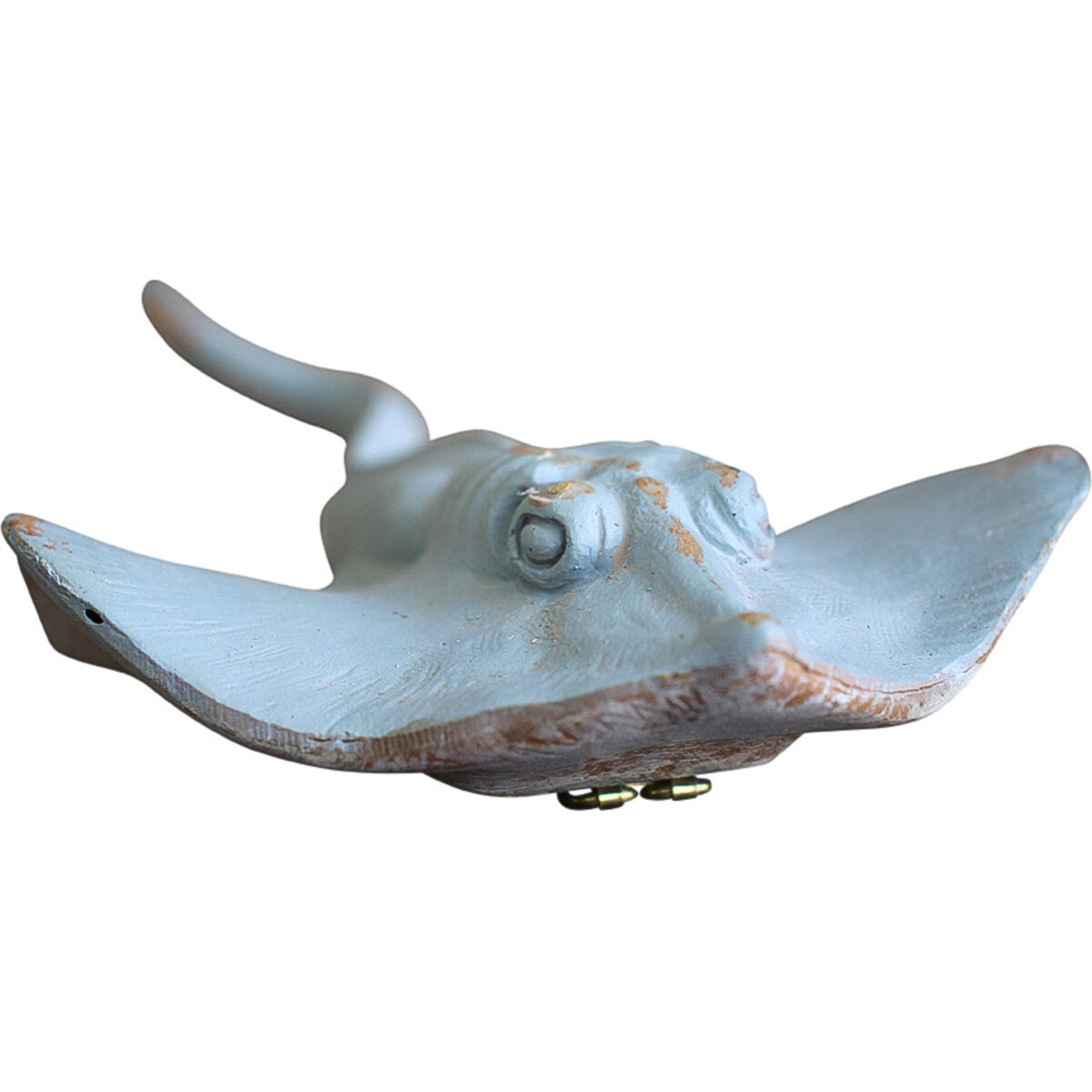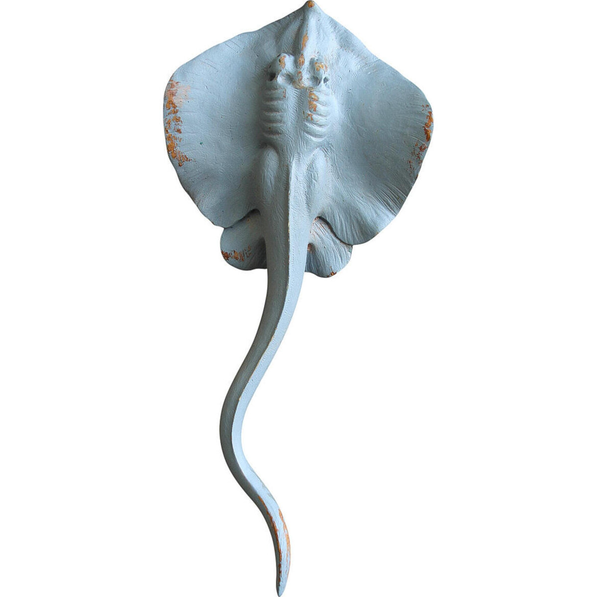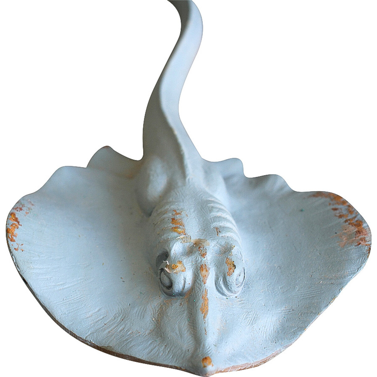 This fish figurine will be an exciting aquatic wall decoration in any room and works perfectly on its own or as a grouping. Made from resin casting to form the common stingray, it is given a detailed shape, features and texture with some of the paint being purposely scraped off for a distressed look. Hang a few of these on each wall or mount them as a group on your children's underwater theme room wall to see their surprised and delighted faces as they see these swimming on their walls. You may even place this on the wall behind the bathroom door or any unexpected corner of the guestroom for a fun surprise for the guests!
