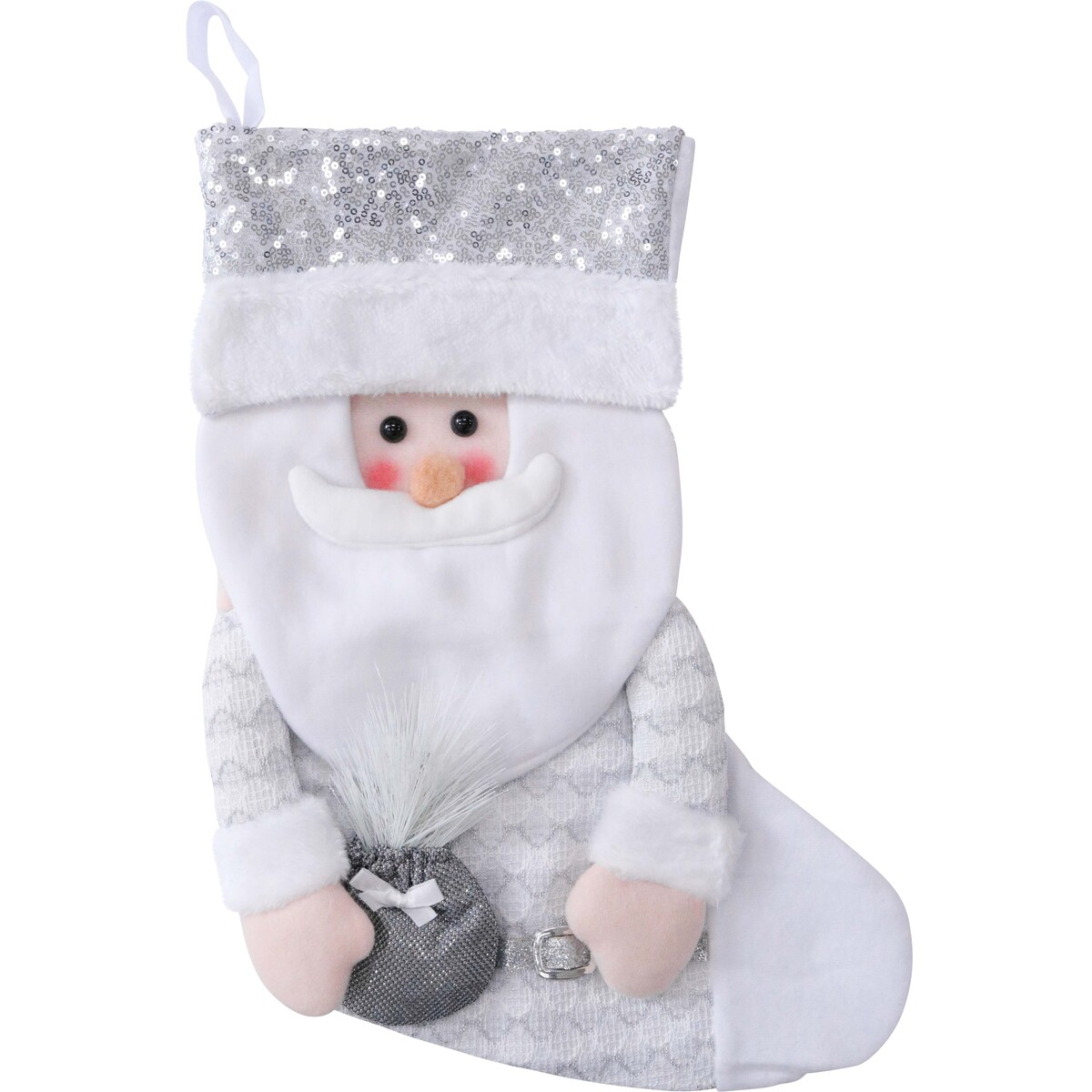 Silver and white Christmas pieces have been getting a lot of love lately, which is one reason we’re excited about our Stocking Santa Silver. This little guy is made from super soft polyester, and at 34cm tall - he’s just the right size for hanging over a fireplace or popping on a door handle. Our team really likes how the silver glittery hat stands out against the all-white beard and suit. The attached fluffy sack is a sweet detail too - it’s topped with spiky silver tinsel and tied off with a neat white bow.