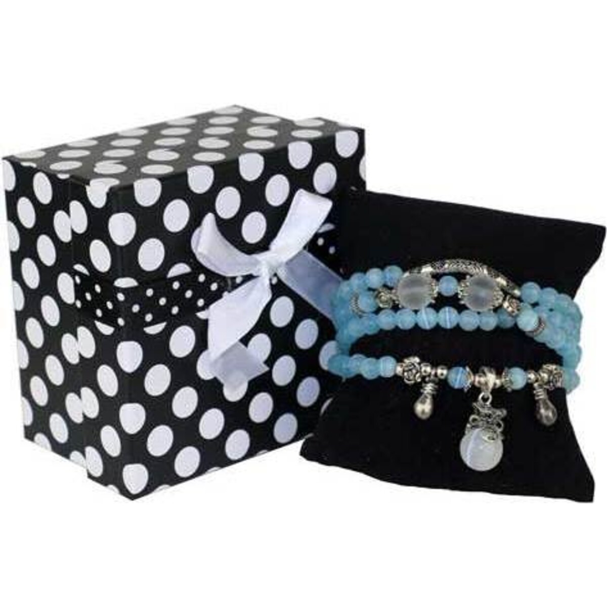 Being a pale ?cat-eye' blue practically all over, this necklace would be a beautiful addition to any outfit. The brass-coloured charms on the necklace just give it that edge ? they make the necklace truly stand out among others, as well as giving it a more fashionable look. Being 35cm long, the necklace will drape across your customers gracefully, giving them a look that no one could resist. The stone necklace is really stylish and can suit anyone ? whether they're young or old. This will definitely be a favourite among your customers. The white pearls amongst the blue and the brass colours just help to break it up a bit and make the necklace much more visually appealing. This is a product you can't ignore.