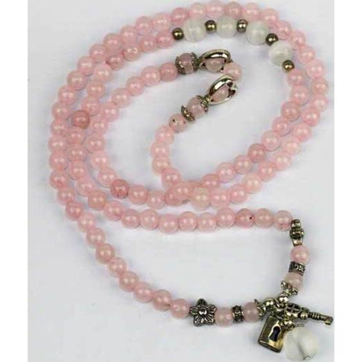 This Stone Necklace Rose Quartz is a beautiful piece of jewelry for anyone to wear. What makes this gem different than others is its simplicity, yet bold colours and design. With a beautiful rose colour, white, and gold trim, many customers have loved the variety of clothing apparel options that they can match with it. The one size fits all length allows for anyone to wear it comfortably. Choosing an outfit to match it with will not be a problem at all. Each pearl is created with intricate, beautiful, and durable stone material. The dimensions are 34 centimeters, which provide a great length around the neck region.