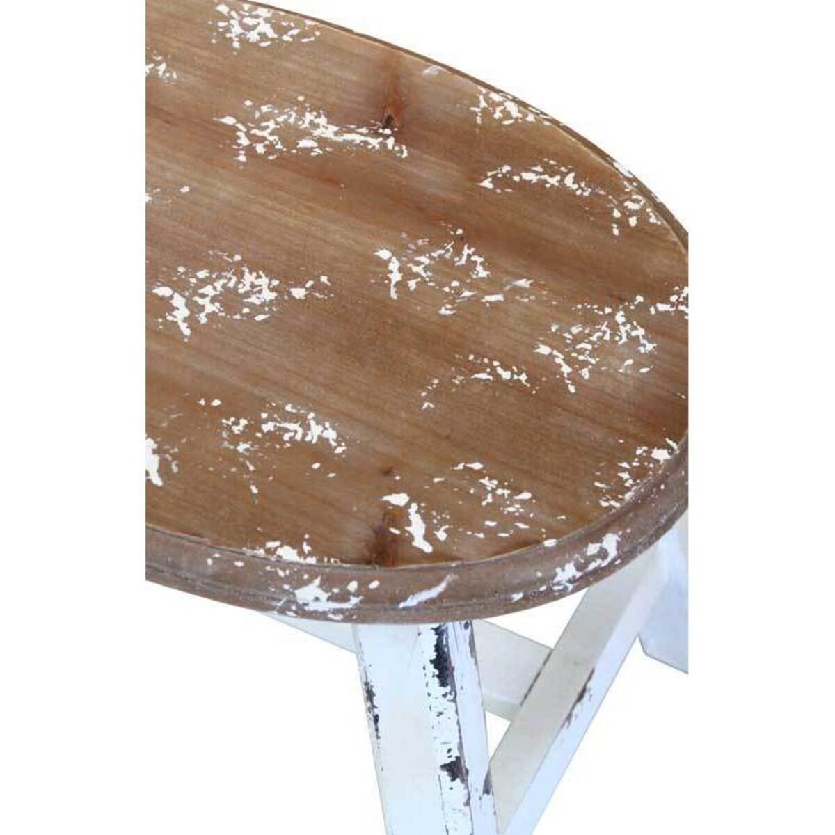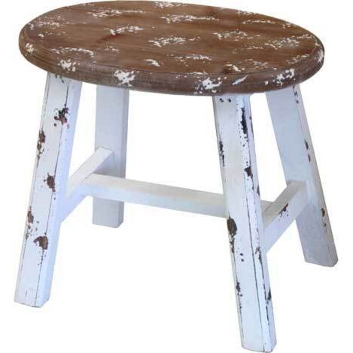 Blotches of white paint on the brown smooth top, the legs with their own distinct marks of distress and the very mood and style of this small little stool with shabby chic features makes it a very interesting little addition to the home. Stools such as this will be noticed for their quaint rustic looks as well as the manner in which they help create that little niche for some extra display.