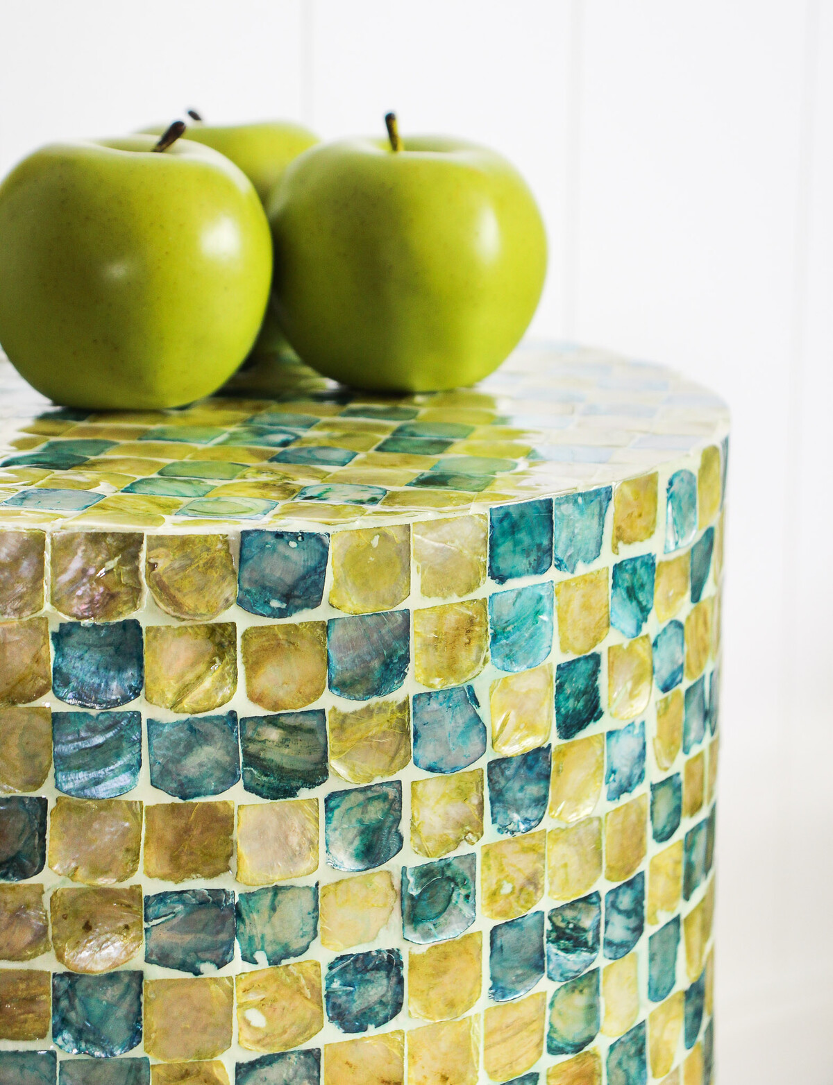Using a simple yet breathtaking pattern, this tiled stool table is sure to be the topic of conversation when you have guests over. Made of Medium Density Fibreboard (MDF) and capiz, it is strong, durable and long-lasting. Weighing a little over seven-and-half kilograms, this stool table is sturdy and can hold light to medium-heavy objects. It has blue and ochre yellow colours on it that makes it pleasing to look at which gives it this natural, earthy touch. Its seamless circular design allows for it to be placed anywhere so you can try placing it in your living room, bedroom or study to see how it elevates every space. With a soothing appearance that mimics clear glass marbles set in stone, this brilliant piece of furniture brings to your home that beachy effect you so love.